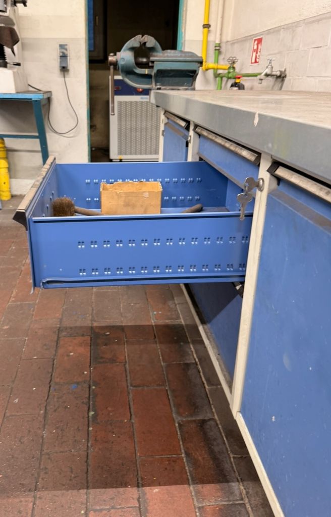 – Arbeitsfläche ca. 200 × 70 cm, verzinkter Stahlblechbelag