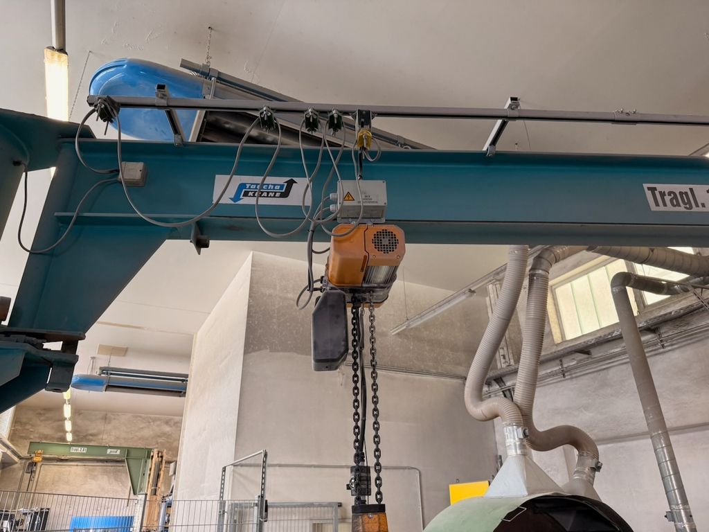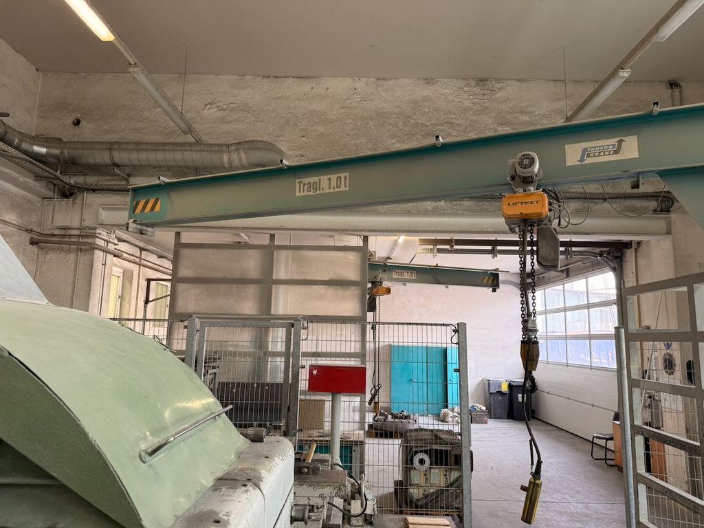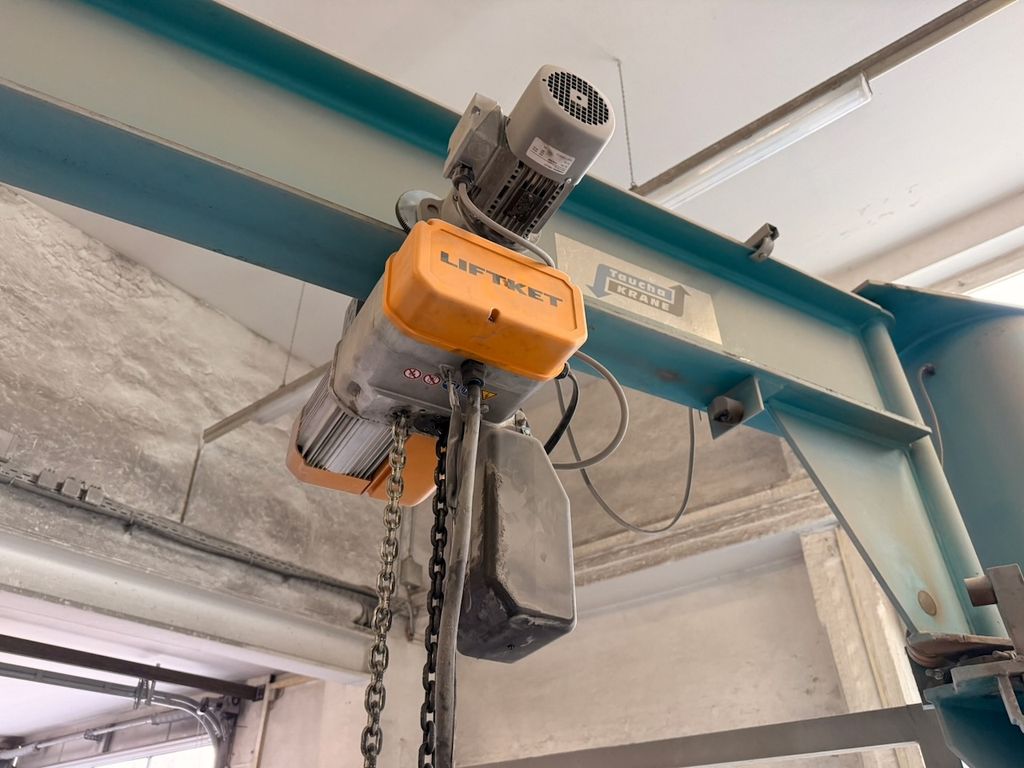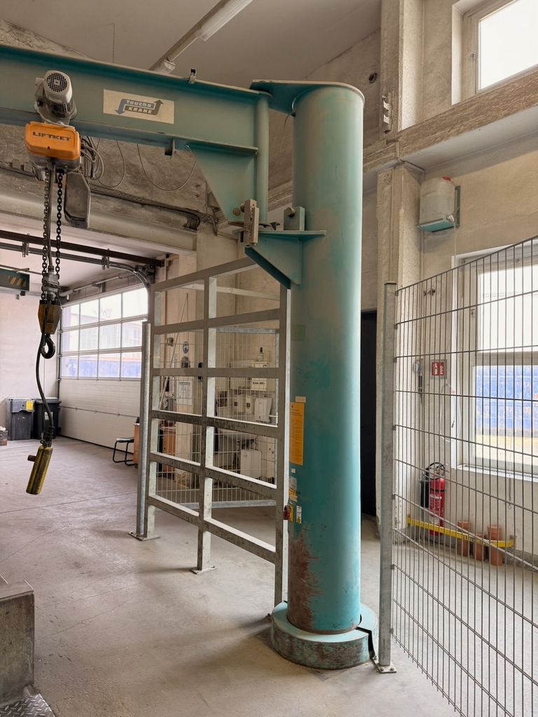 Säulenschwenkkran der Mechanik Taucha Fördertechnik GmbH, ausgestattet mit einem Elektrokettenzug LIFTKET (Baujahr 03/2021).