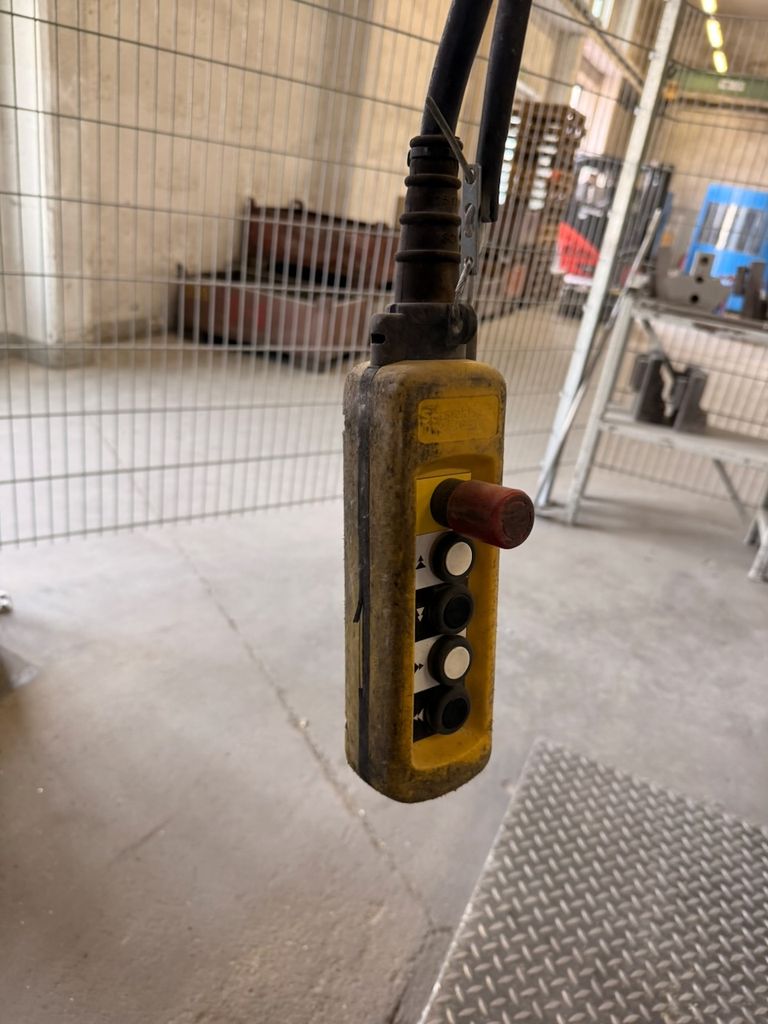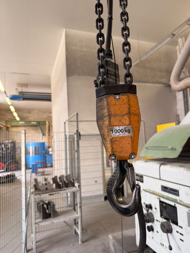 Der Kran ist für eine Traglast von 1.000 kg ausgelegt und verfügt über elektrisches Verfahren des Hubwerks.