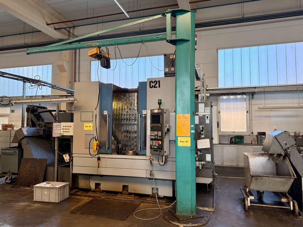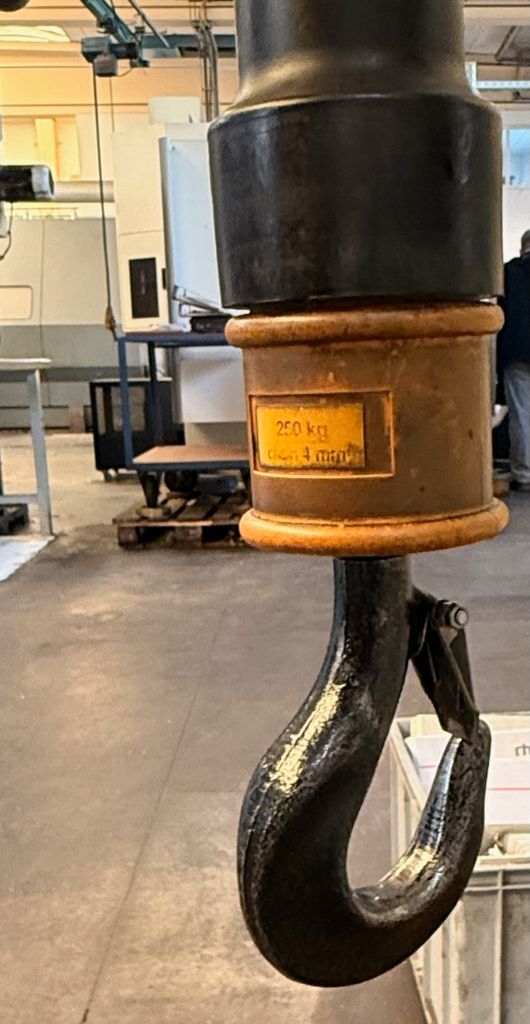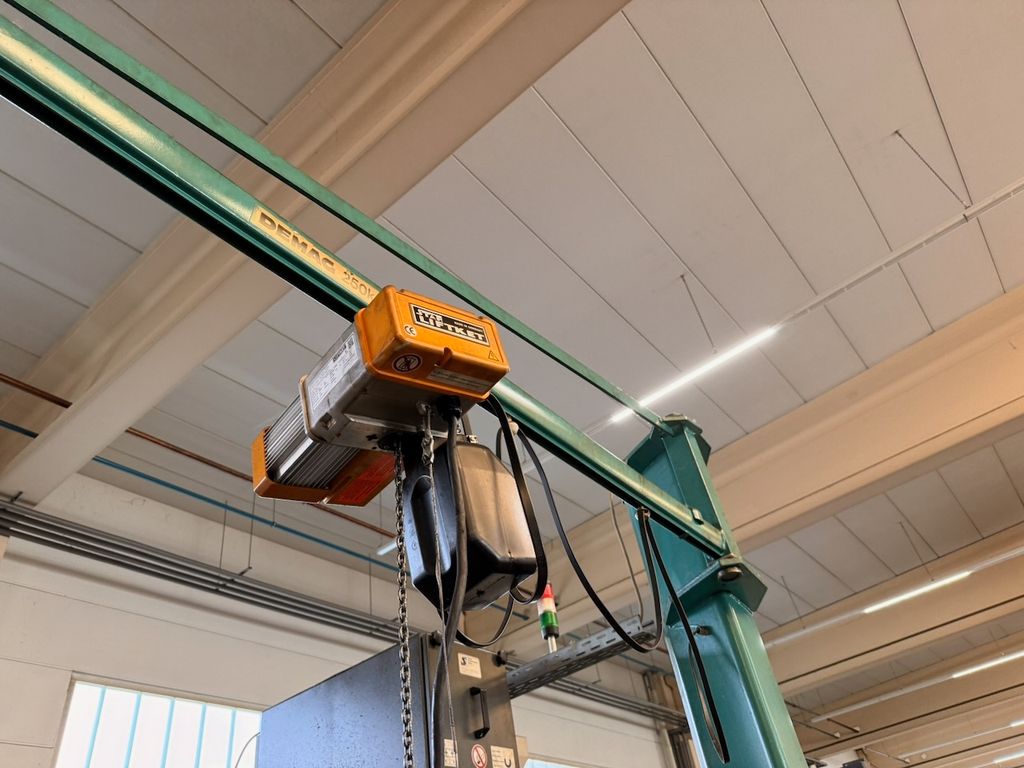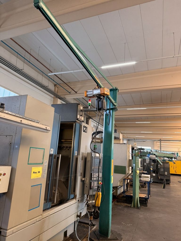 Anlage bestehend aus Säule, Ausleger und elektrischem Kettenzug.