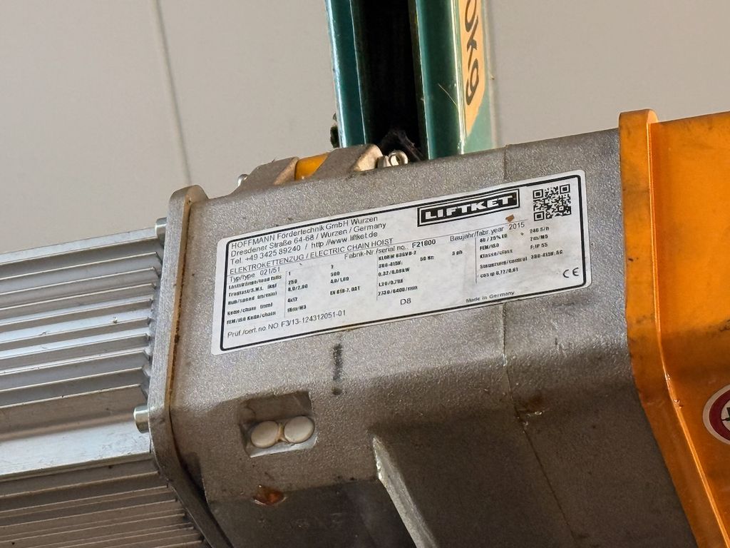 Die Anlage ist mit einem Elektrokettenzug Fabrikat LIFTKET ausgestattet.
