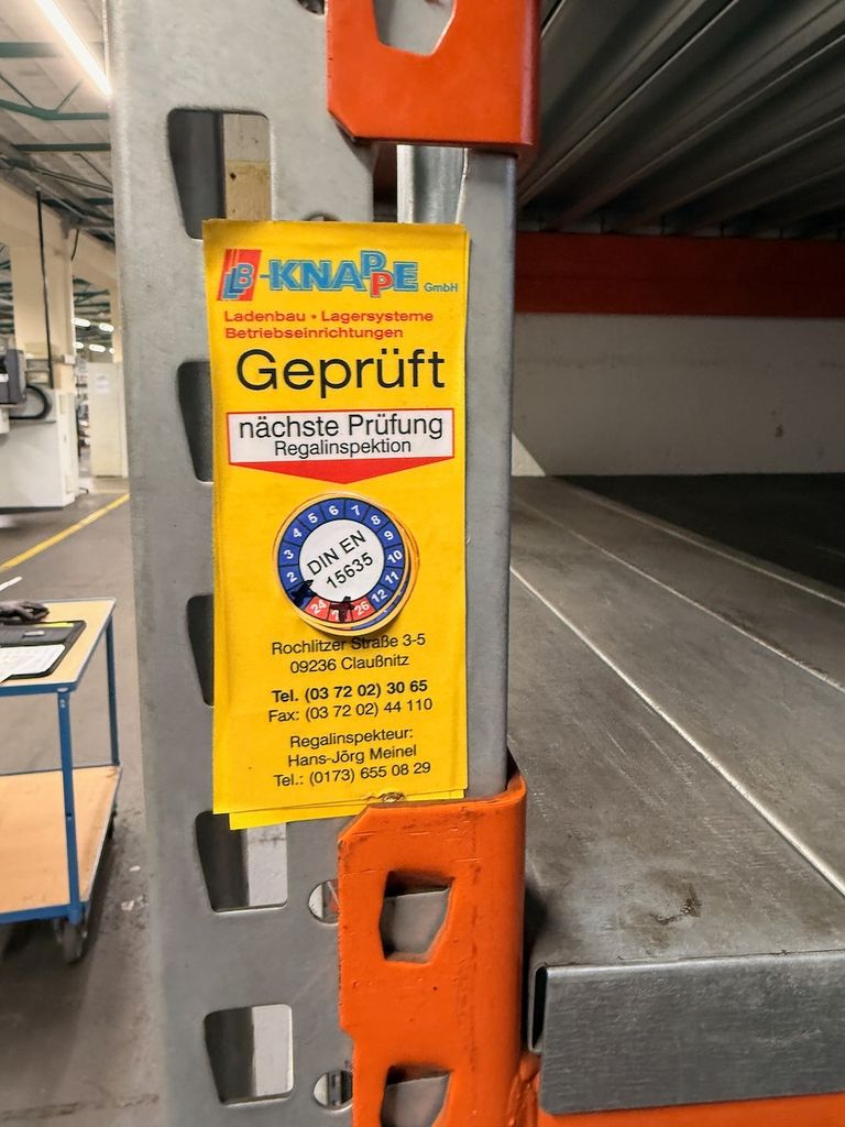 • Prüfplakette vorhanden (Regalinspektion durchgeführt)