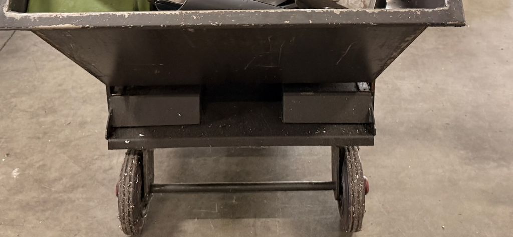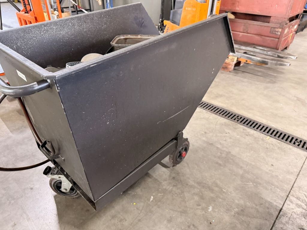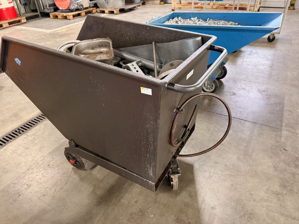 Gebrauchter Kippbehälter aus Stahl, geeignet für Späne, Schrott und sonstige Schüttgüter.