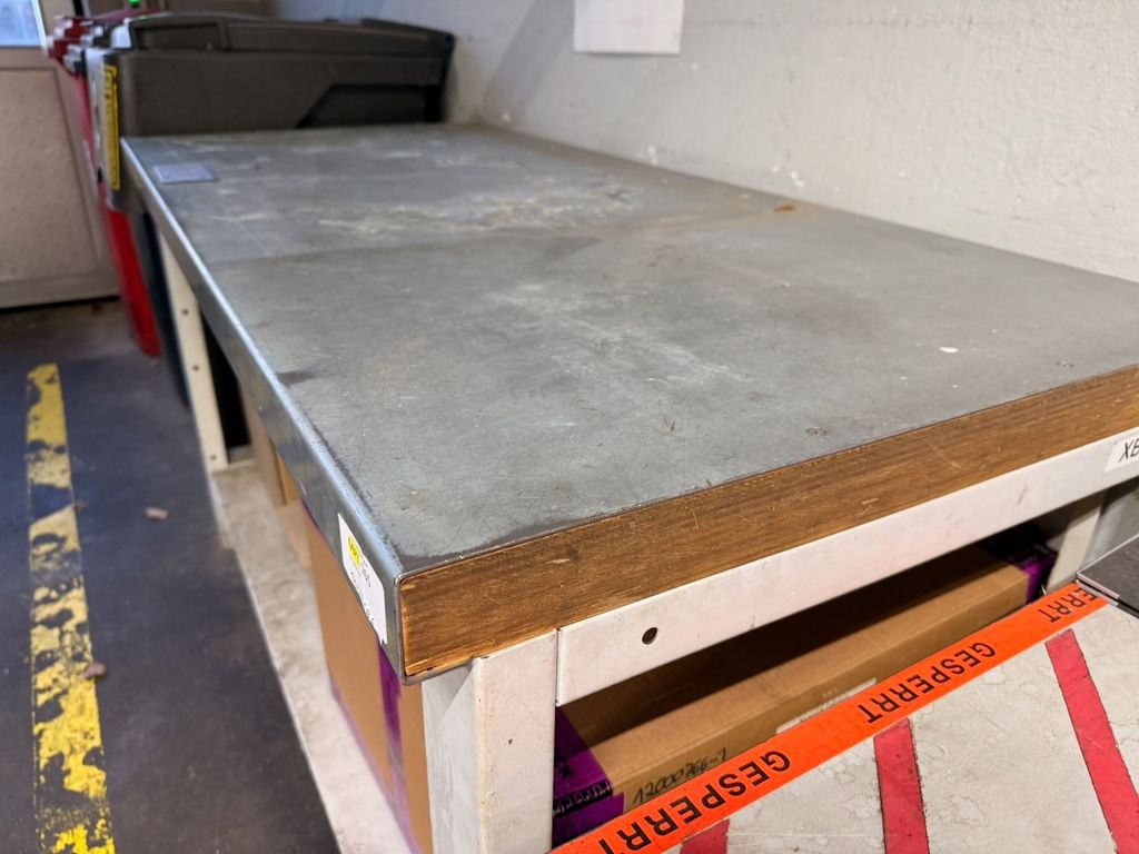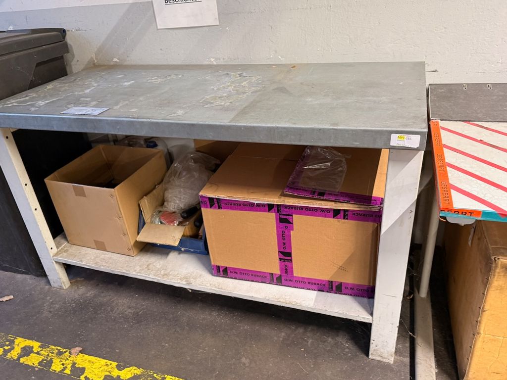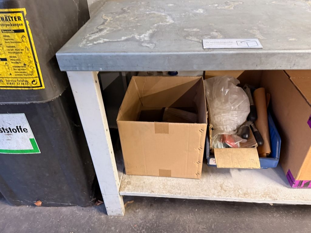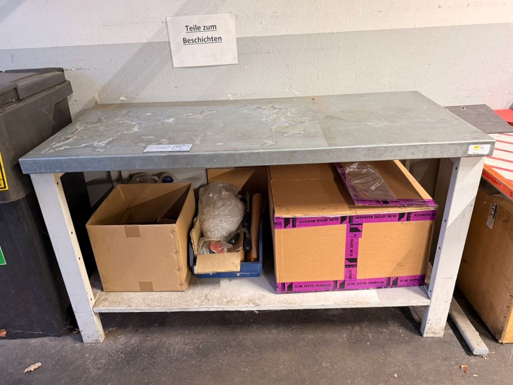 Werkbank von ANKE mit verzinktem Stahlblechbelag als Arbeitsfläche. Die Werkbank verfügt über ein fest verschweißtes Stahlgestell sowie eine untere Ablageebene. Geeignet für Montage-, Prüf- und Werkstattarbeiten. Verkauf erfolgt ohne Inhalt.
