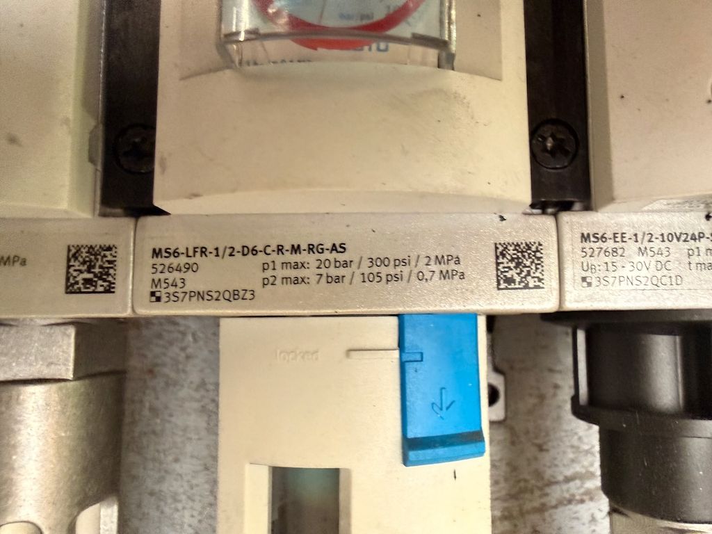 Komplette Pneumatik-Wartungseinheit von Festo aus dem Rückbau einer Industrieanlage.