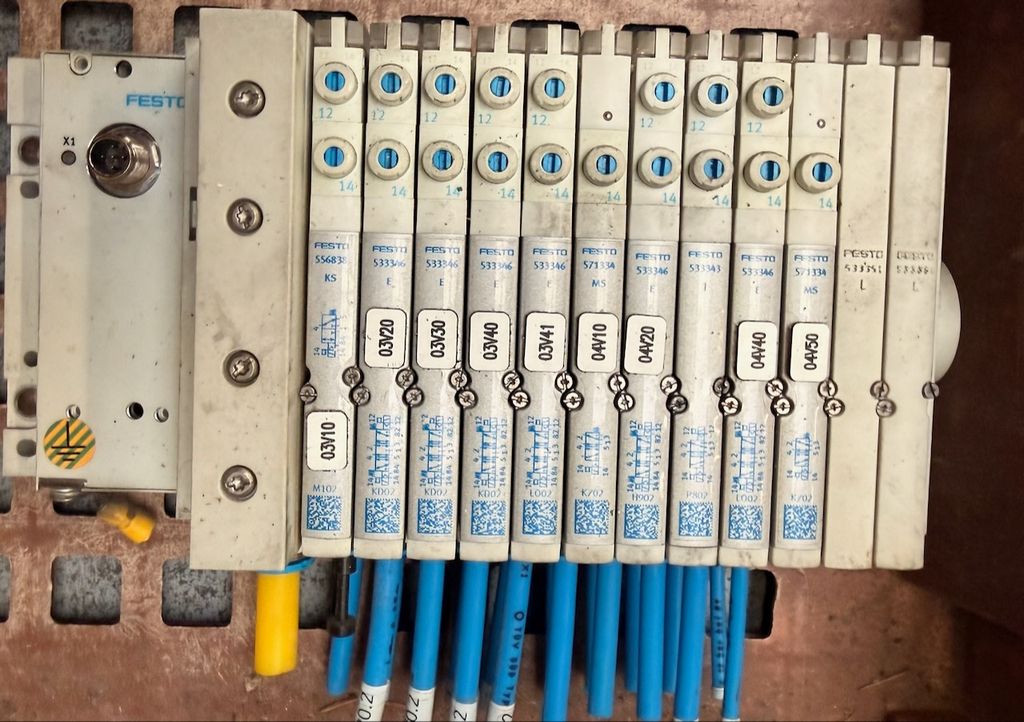 Konvolut aus Festo Ventilinseln / Pneumatikventilen aus dem Rückbau einer Industrieanlage.