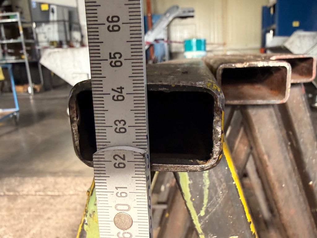 Satz aus drei stabilen Werkstatt-Stahlböcken, geschweißte Konstruktion aus Vierkantrohr.