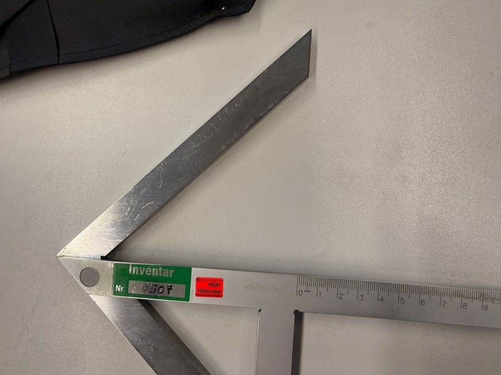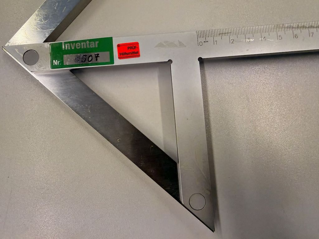 Zentrierwinkel mit 300 mm Schenkellänge zur exakten Bestimmung von Mittelpunkten an runden Werkstücken (z. B. Wellen, Rohre, Scheiben).