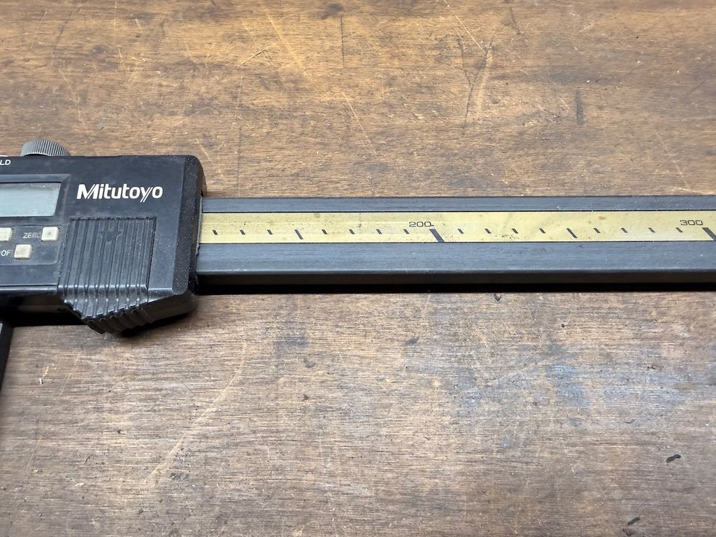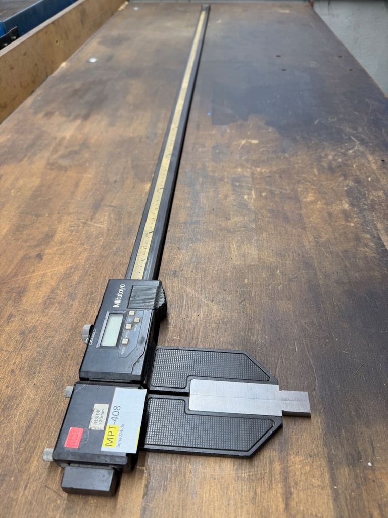 Digitaler Tiefenmessschieber von Mitutoyo mit großem Messbereich bis 1500 mm und breiter Tiefenmessbasis.
