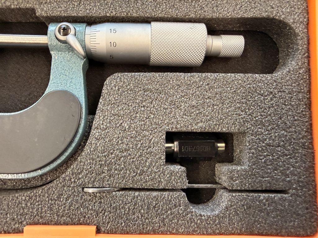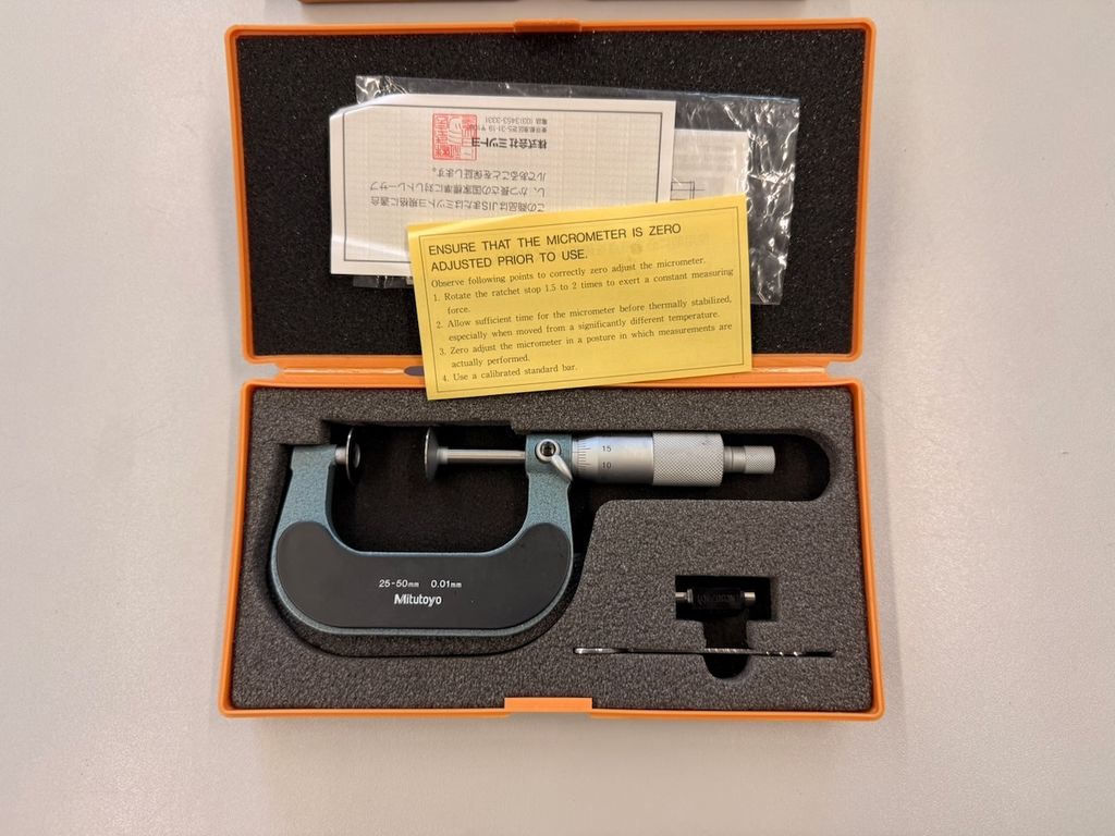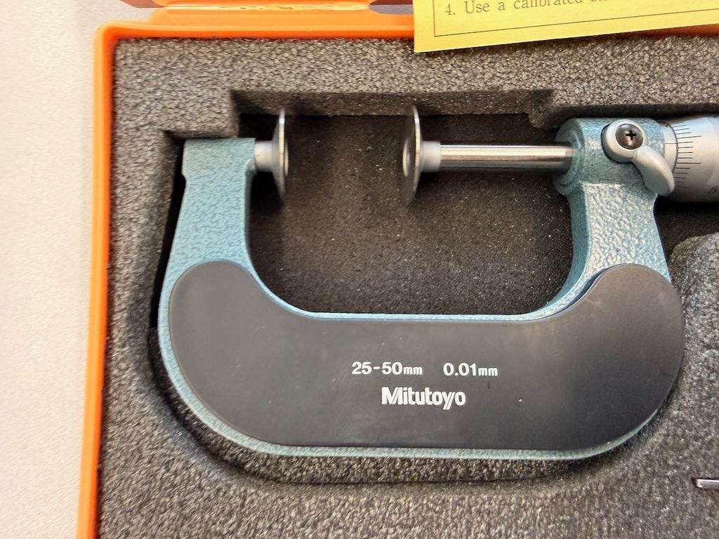 Das Messgerät deckt den Messbereich 25–50 mm ab und verfügt über eine Ablesung von 0,01 mm.