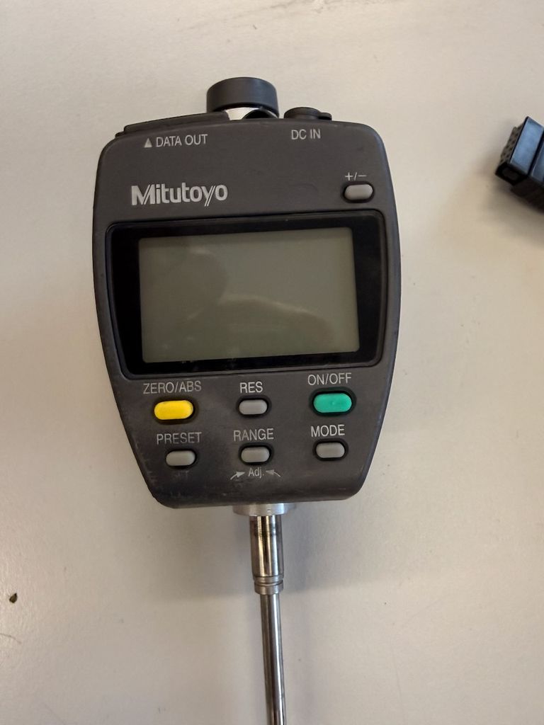 Die Messuhr verfügt über eine digitale Anzeige, ABS-/Inkrementalmodus, Preset-Funktion sowie Datenausgang (DATA OUT) zur Anbindung an Auswertegeräte oder PC.