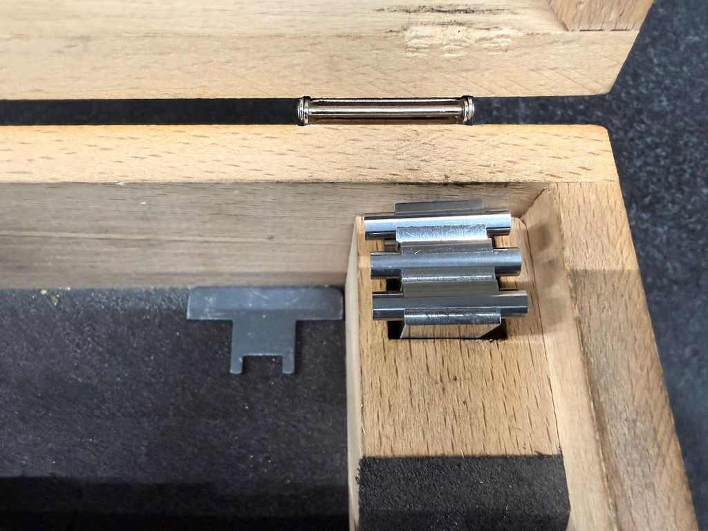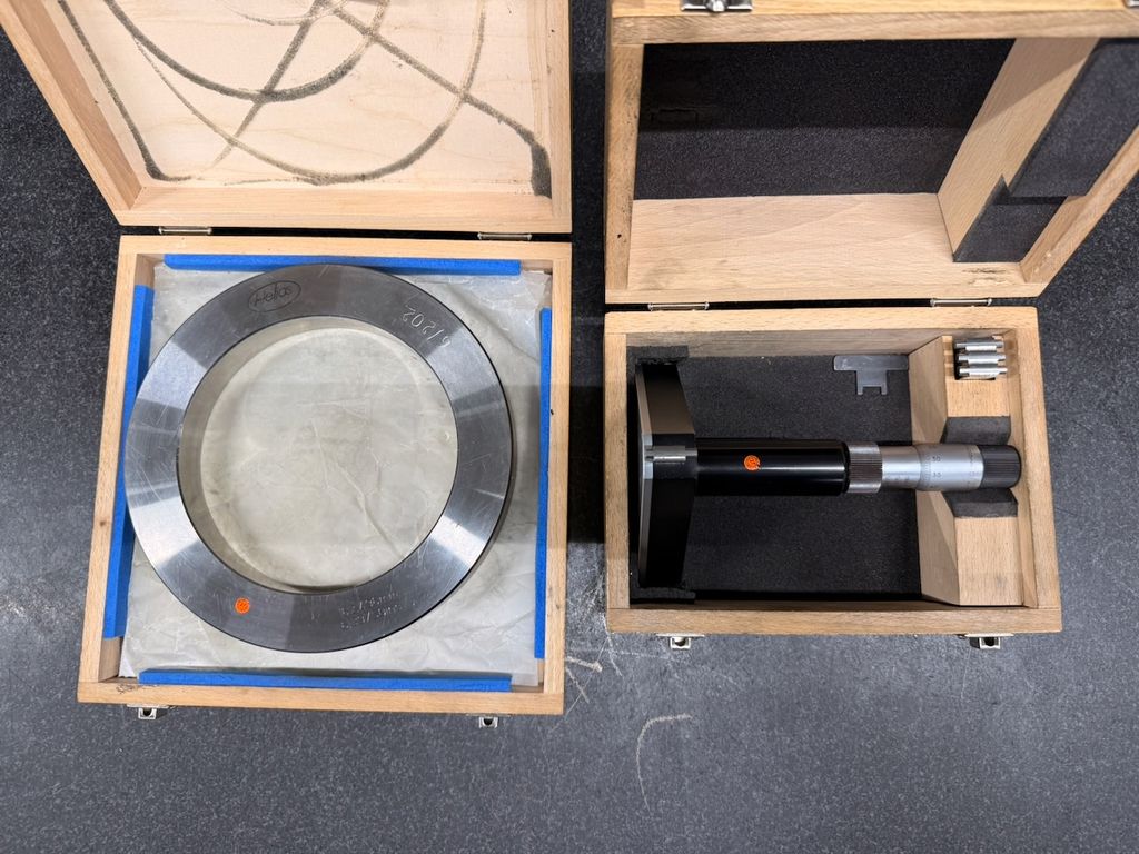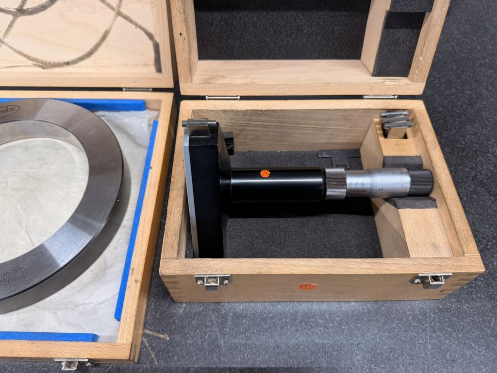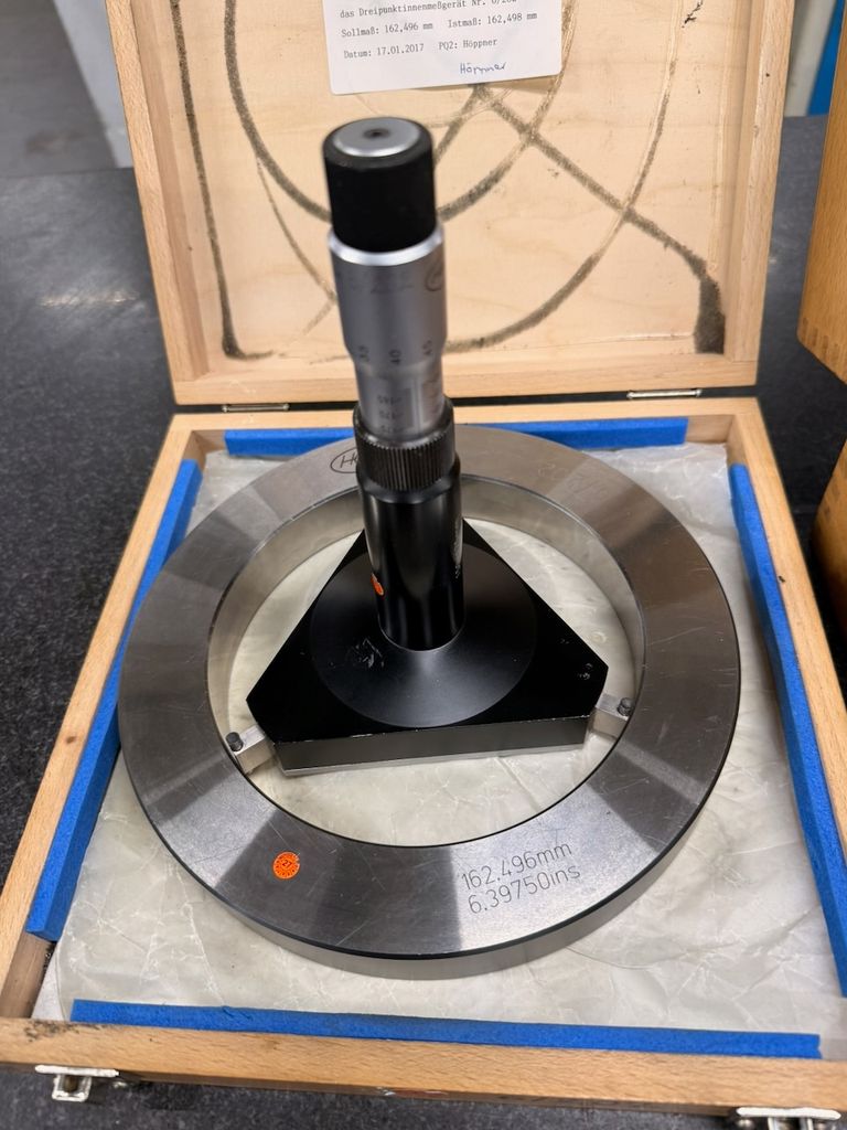 Zubehör: Einstellring Ø 162,496 mm, Wechselmessköpfe, Original-Holzkasten, Maßprüfunterlagen