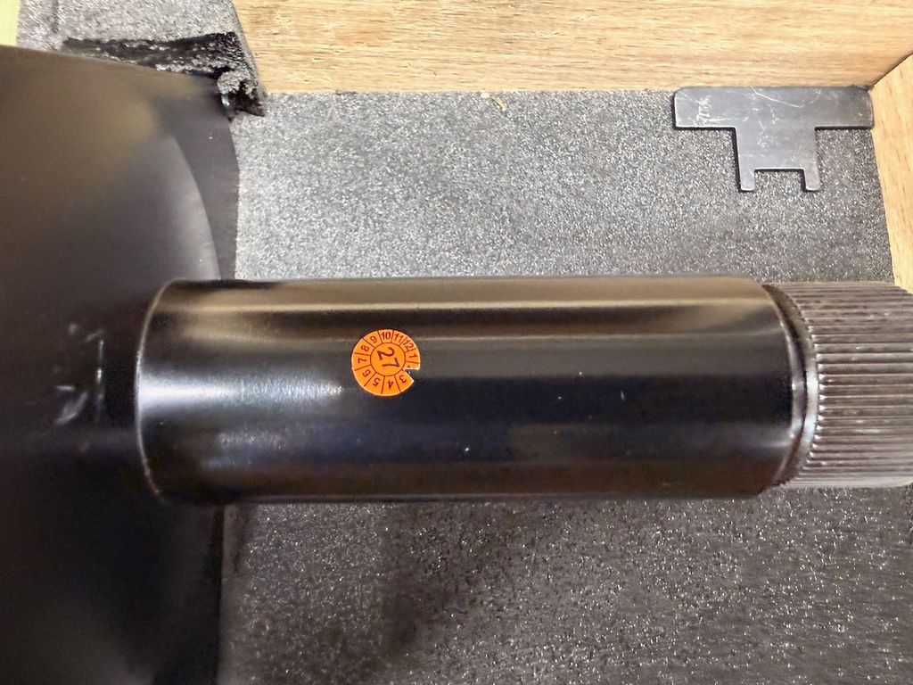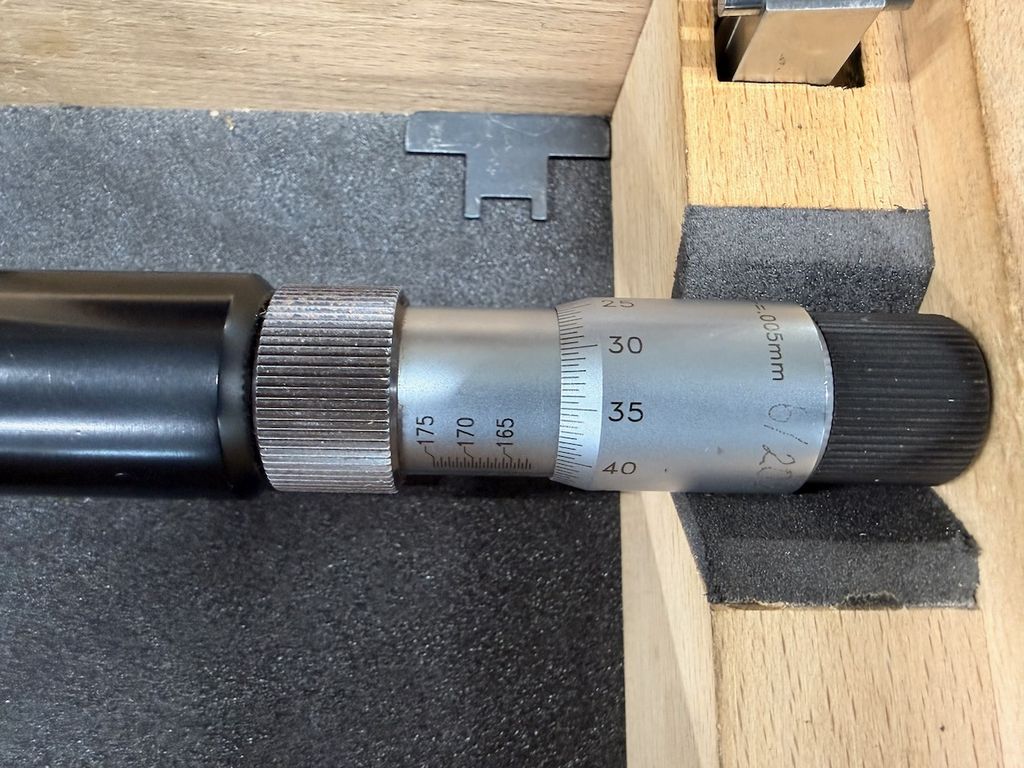 Gebraucht. Messgerät und Einstellring in ordentlichem Zustand mit üblichen Gebrauchsspuren. Holzkasten deutlich gebraucht. Keine aktuelle, rückführbare Kalibrierung.