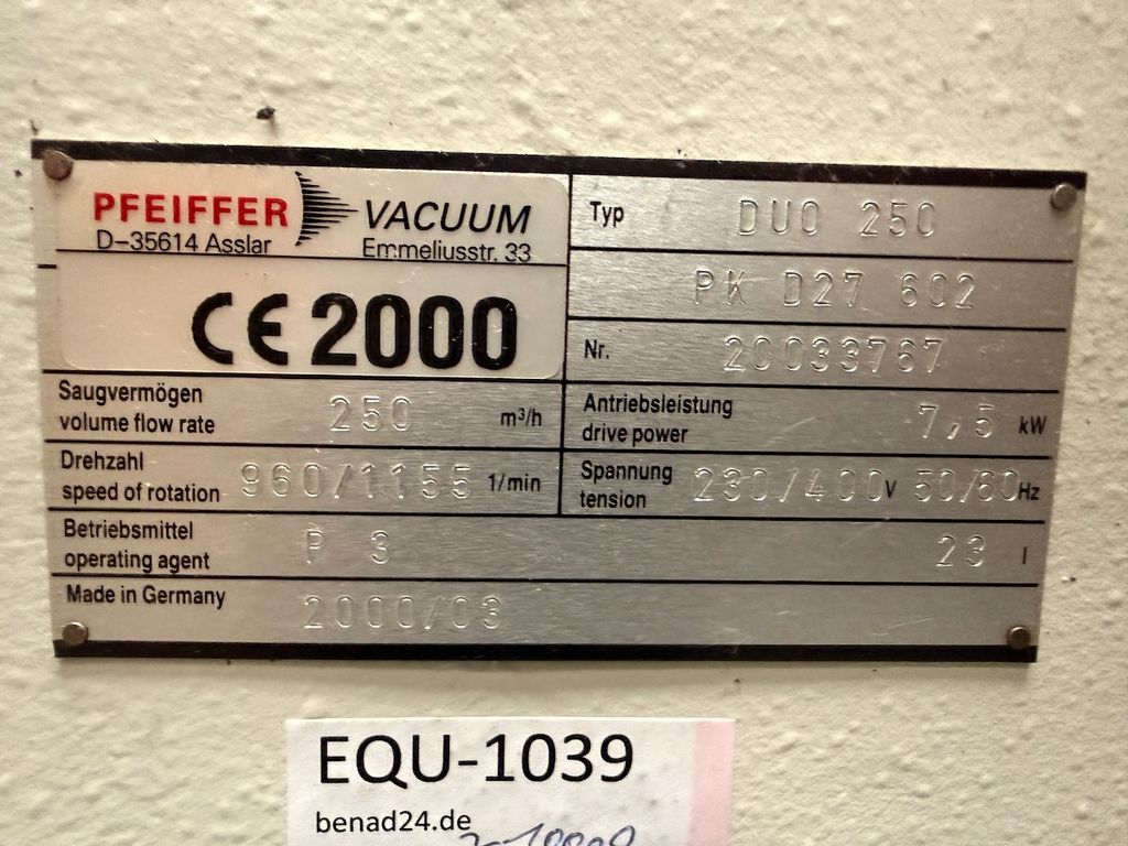 Pfeiffer Vacuum DUO 250, WKP 1000 A, DUO 20 pump stand, 3 vacuum pumps