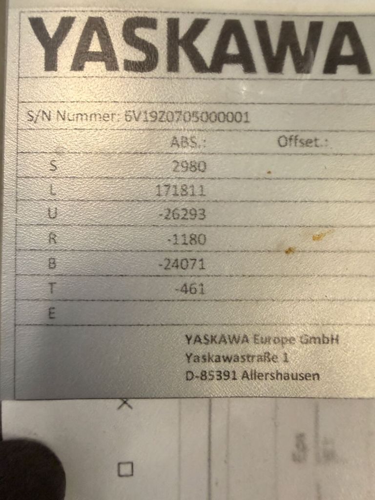 6-axis industrial robot Yaskawa YR-1-06VX7-A00 from the year 2020, ideal for handling, assembly, machine loading, or pick-and-place tasks. The robot is offered complete with: Yaskawa robot arm YR-1-06VX7-A00 Original control Yaskawa ERAS-1000-06VX8-E10 (year 03/2020) Programming device / Teach Pendant JZCRC-APP01-1 (year 2019) RSP (Robot System Products) swivel (Type: P5134 / S/N 00015) Cabling available The robot is in very good technical condition, comes from a clean production environment, and shows normal signs of use.