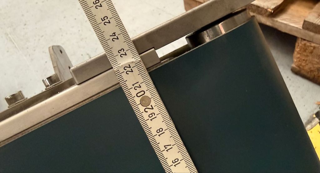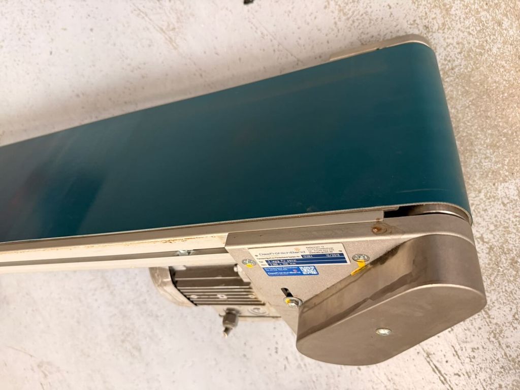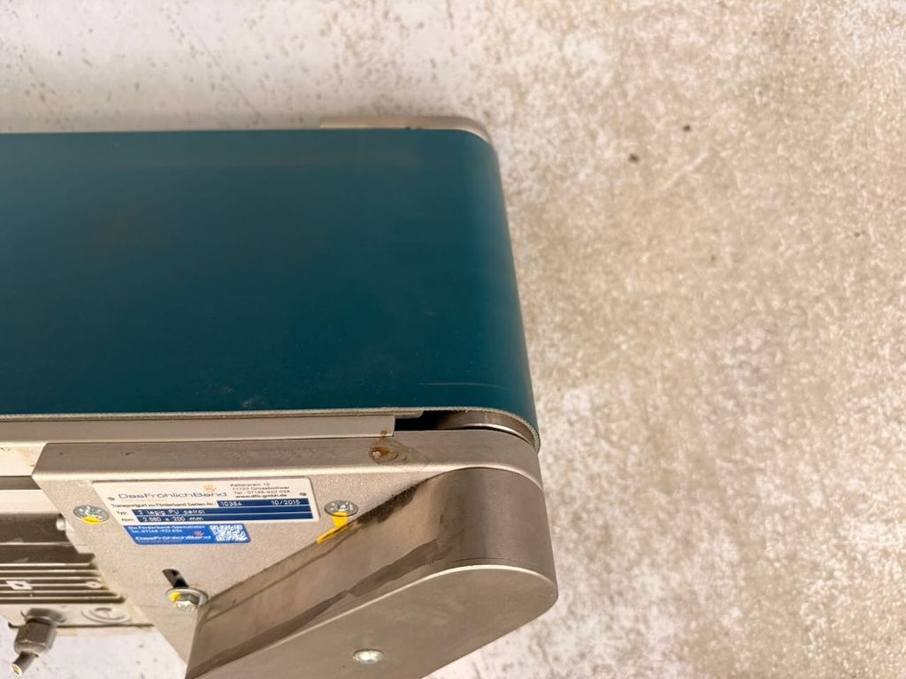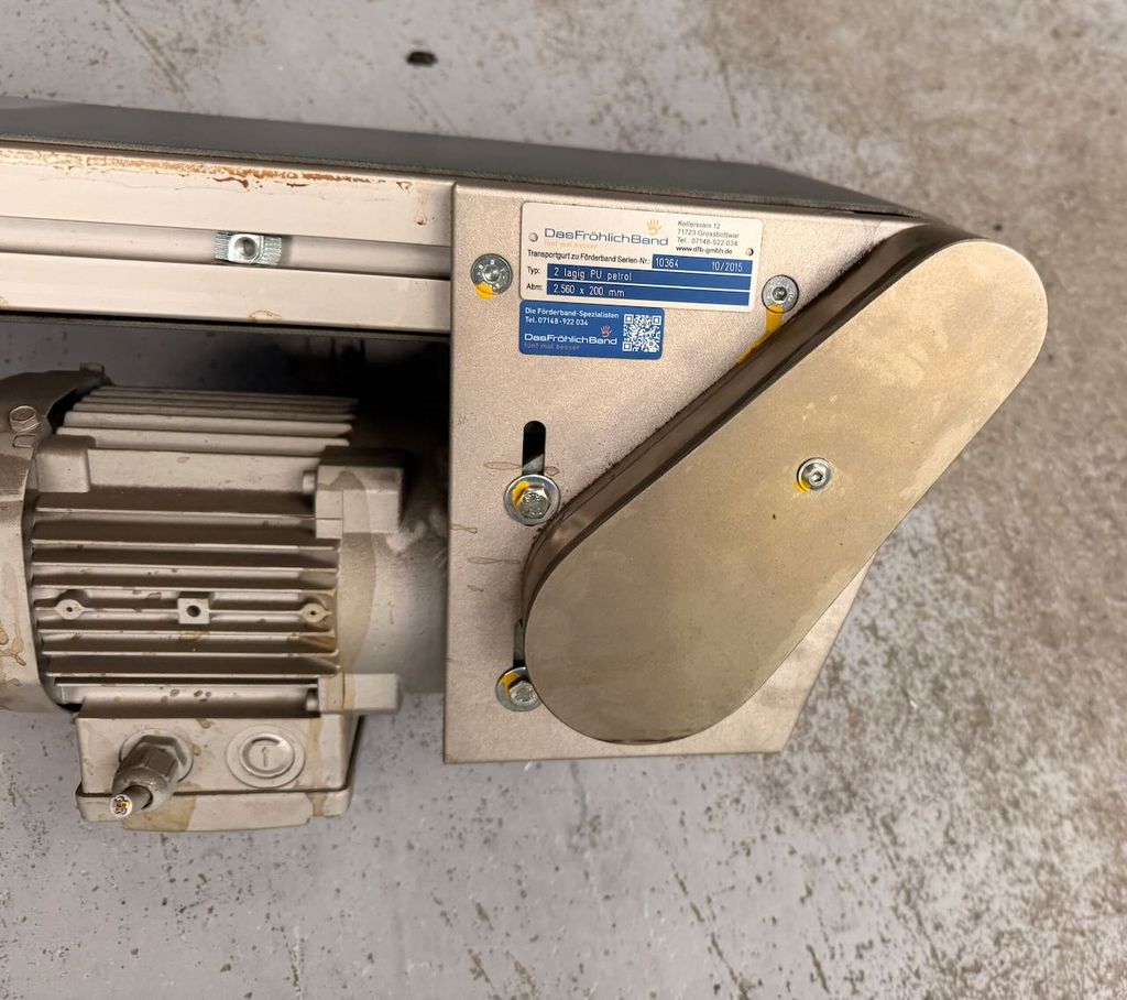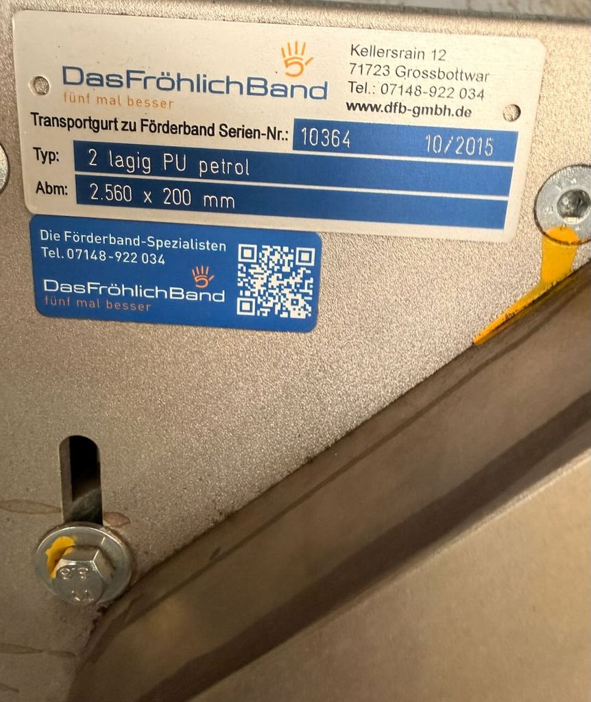 Conveyor belt Manufacturer: DasFröhlichBand Year of manufacture: 2015 Type: 2-ply PU petrol Drive: SEW gear motor