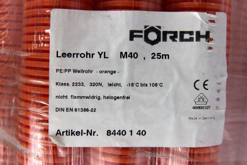 Förch YL M40 orange 25m PE/PP empty conduit corrugated pipe halogen-free light 320N
