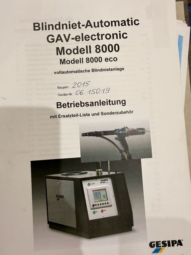GESIPA GAV 8000 electronic – automatic blind rivet setting machine, year of manufacture 2015, with setting head and complete control and feed unit