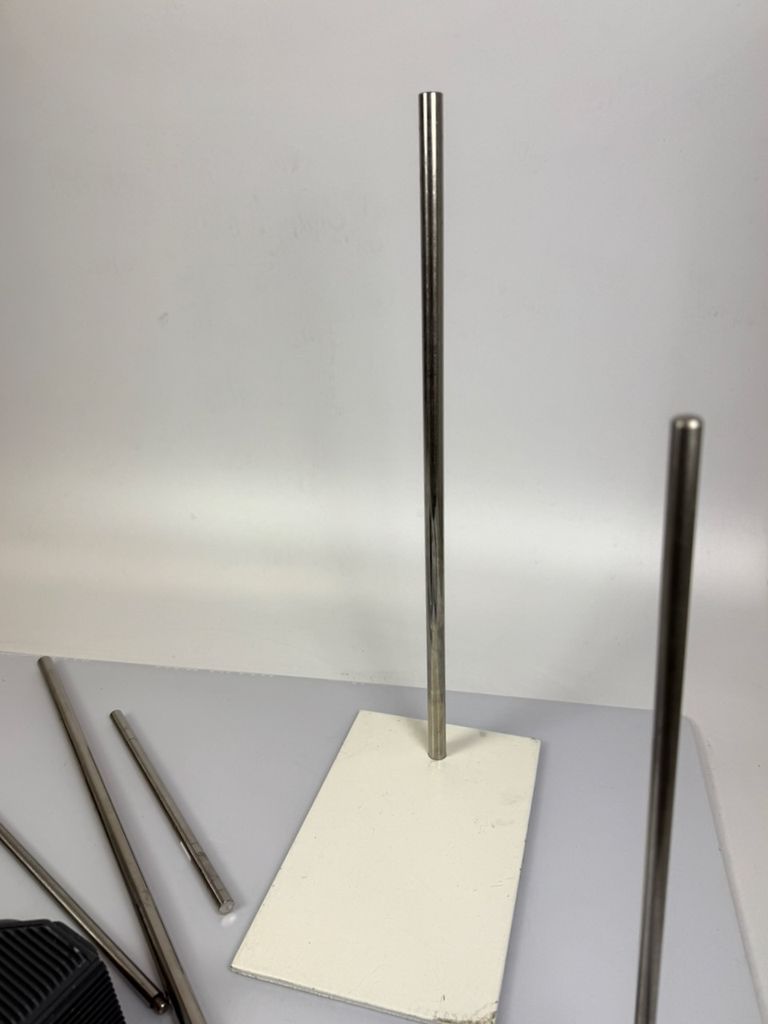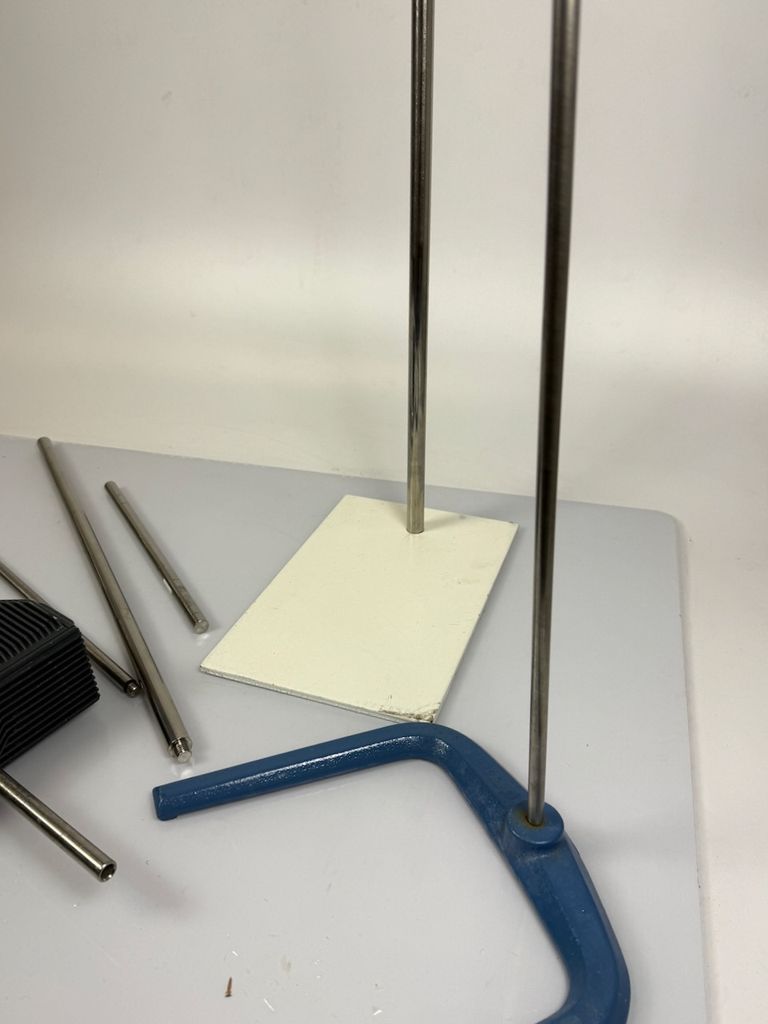 Stirring drive with drill chuck, several stand rods, base plate and bracket; instructions included.