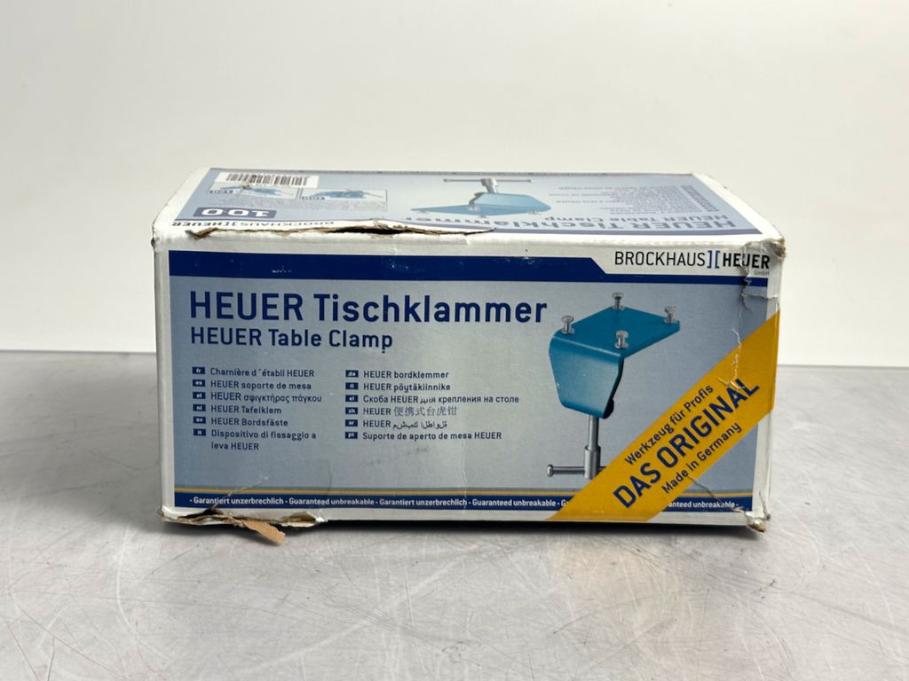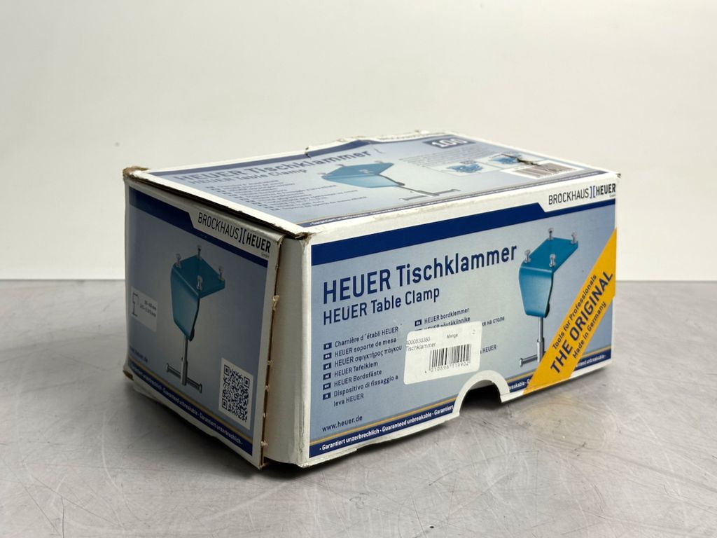 The Heuer table clamp 119 100 is a practical accessory that allows vises to be flexibly and non-destructively attached to workbenches or countertops. It is simply fixed with a strong clamping lever and can be dismantled just as quickly.