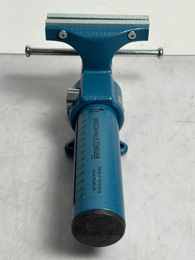 Particularly noteworthy is the HEUER Quicklaunch quick adjustment, which allows the vice to be set from 0 to 125 mm clamping range in a few seconds without operating the handle. Despite its low weight of only 4.5 kg, it achieves a clamping force of 10 kN, making it ideal for mobile use.