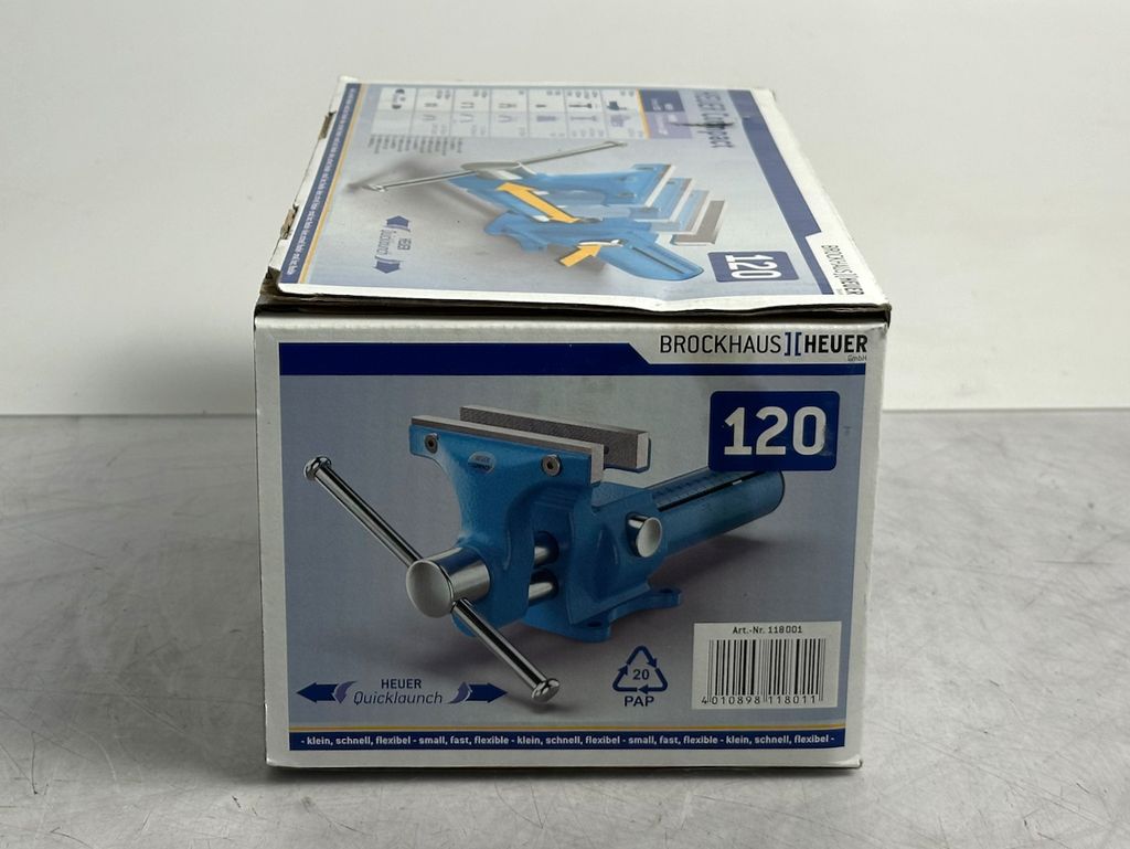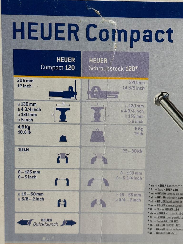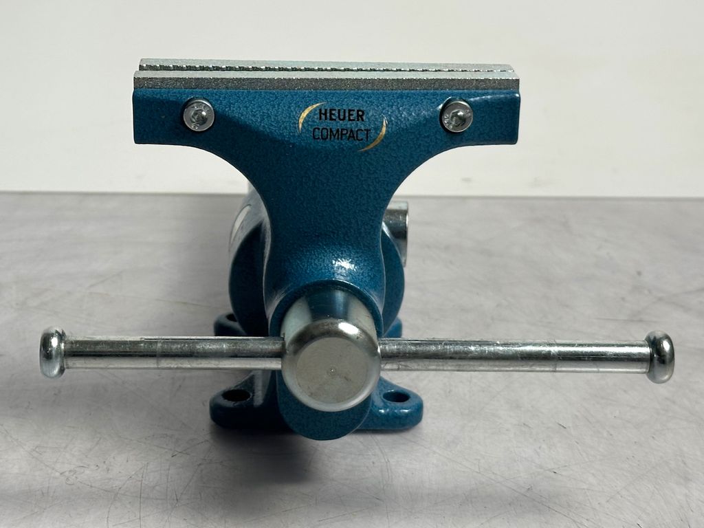 The Heuer Compact Vice 118001 is a mobile and robust parallel vice for workshops and industry. With a jaw width of 120 mm and a clamping range of 130 mm, it offers a compact design with high clamping force.
