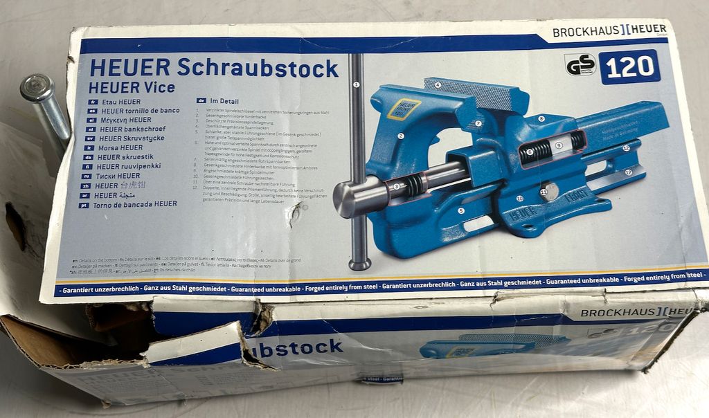 The Heuer Parallel Vice Standard 100120 is a classic workbench vice for professional applications in workshops and industry. With a jaw width of 120 mm and a clamping width of 150 mm, it offers a robust and reliable clamping solution for a wide variety of workpieces.
