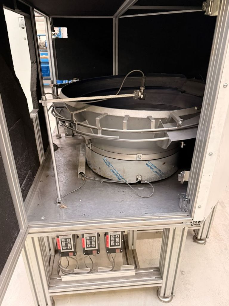 For sale is a complete industrial feeding, bunker, and sorting system for automatic parts provision.