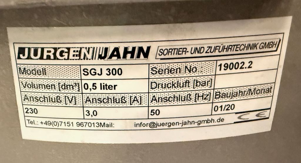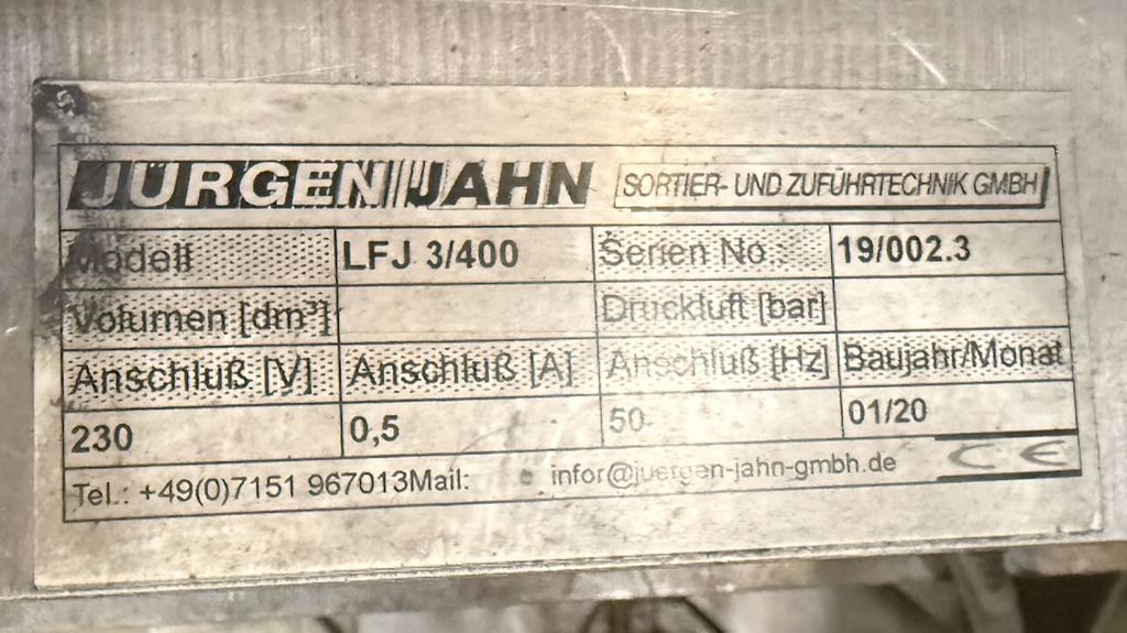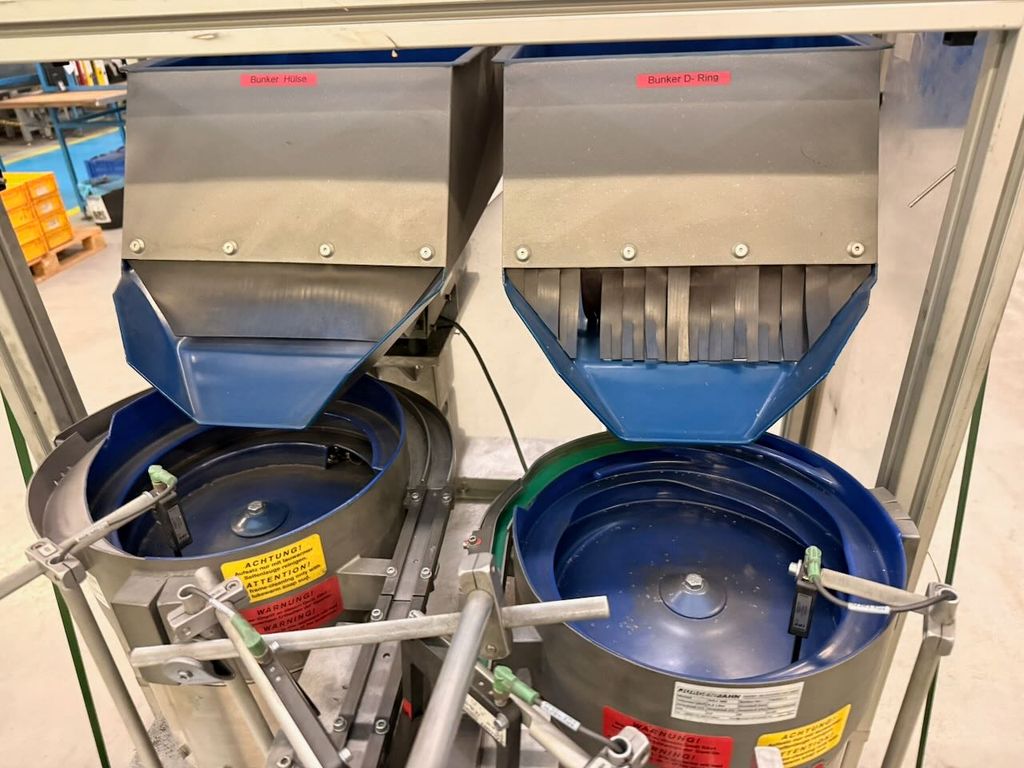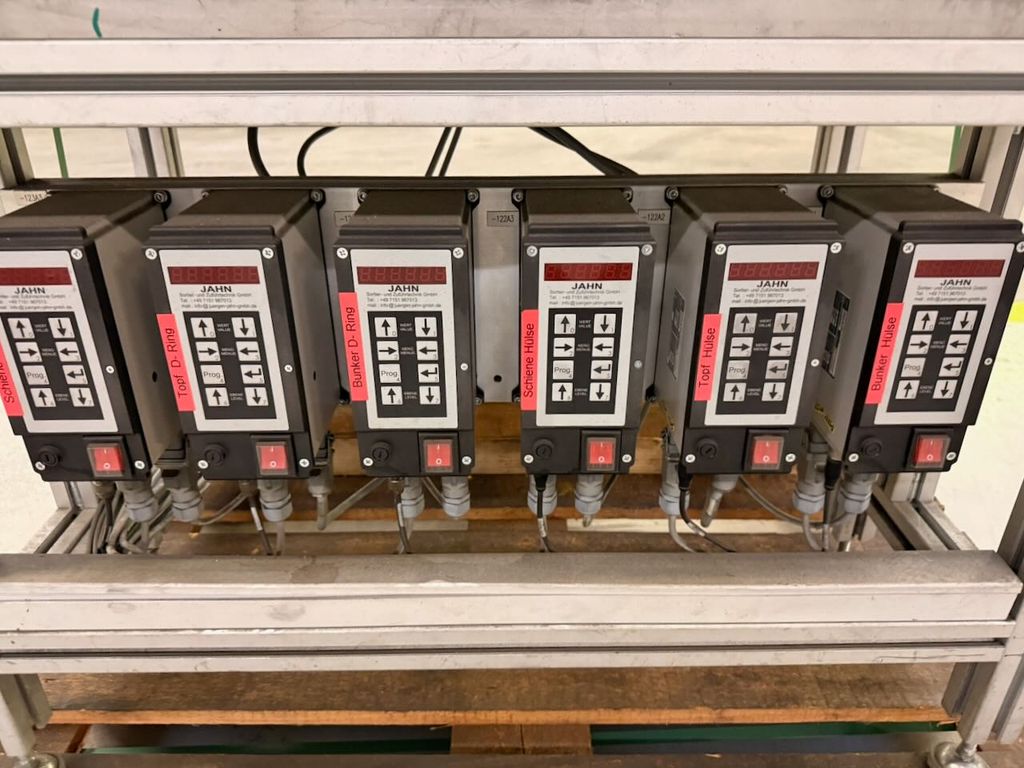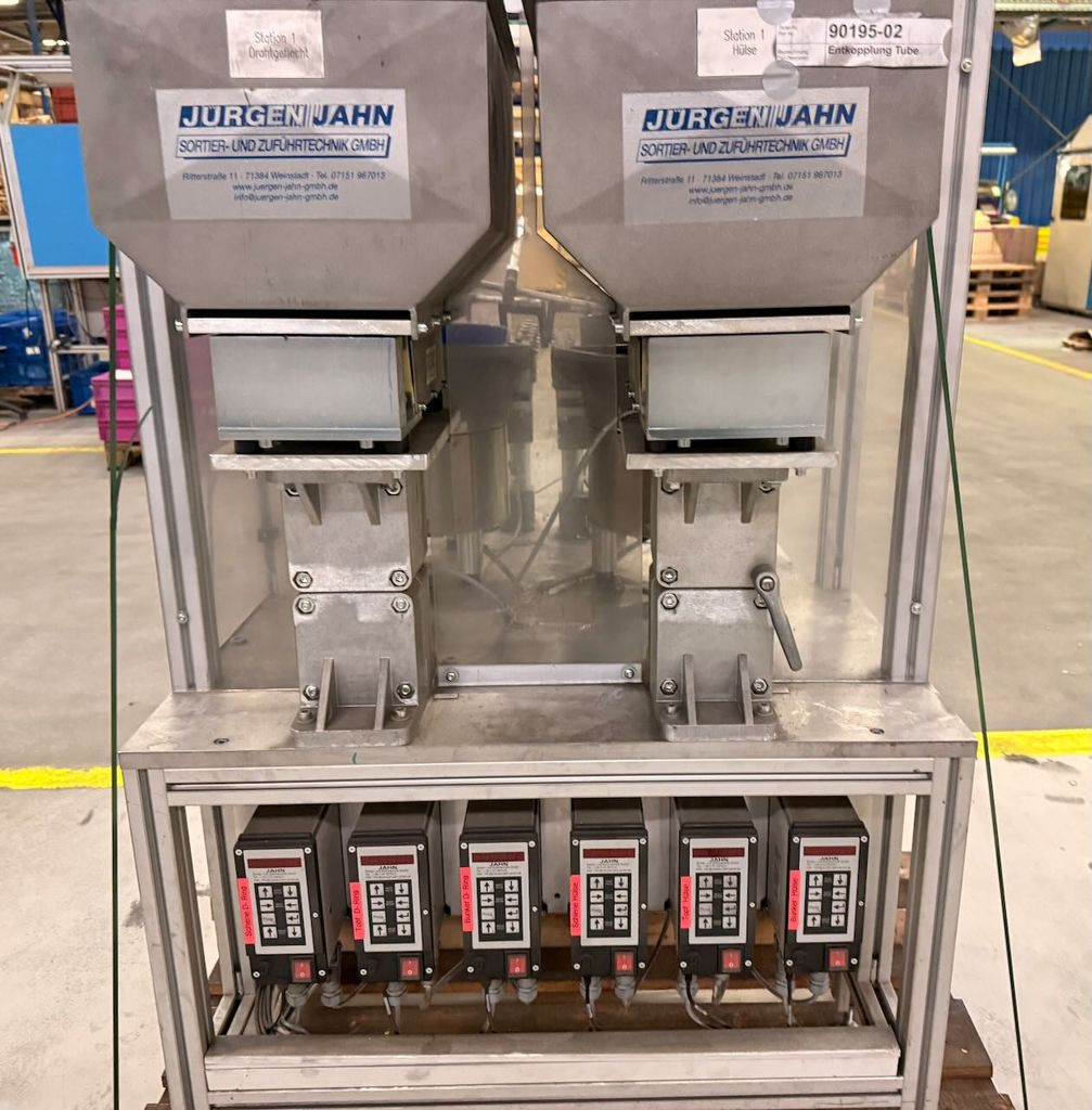 JAHN complete feeding system – (2×) SGJ 300 sorting bowl + (2×) LFJ 3/550 linear + (2×) VBJ 5/40 bunker + control devices
