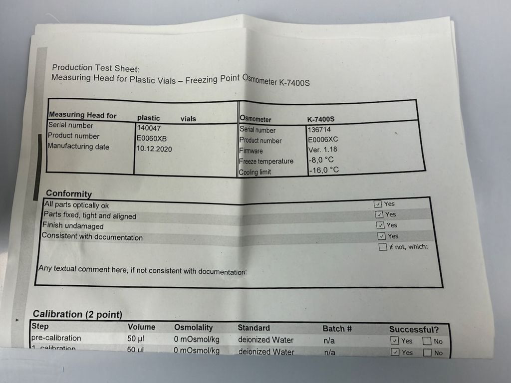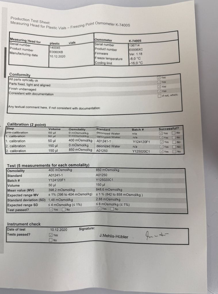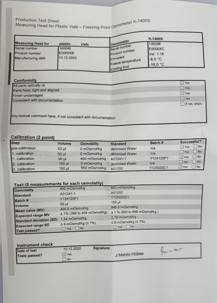 Measuring head for plastic sample tubes, compatible with Knauer osmometers