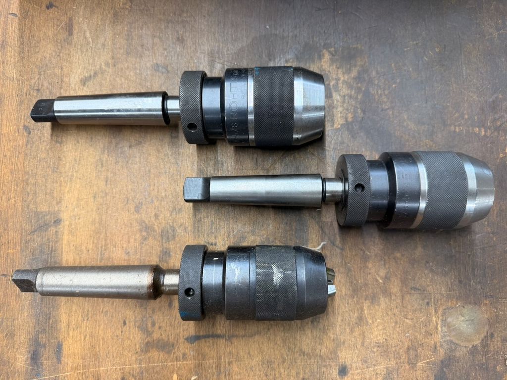 Three RÖHM Spiro 3 keyless drill chucks with Morse taper.