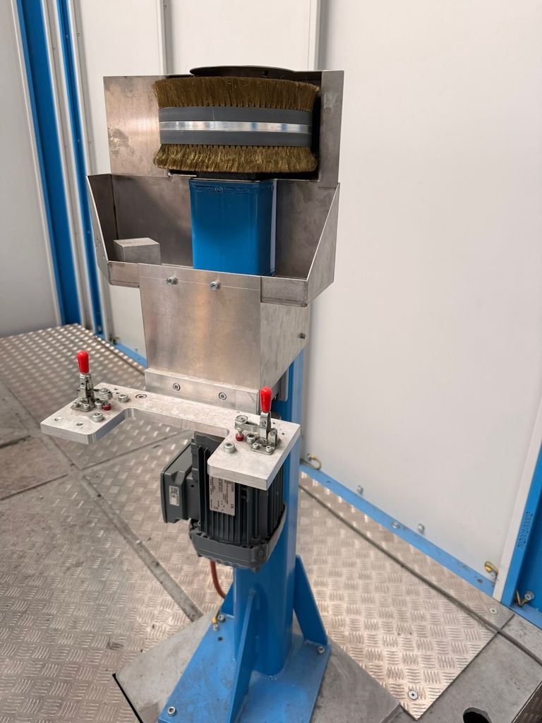 Tongs Cleaning Station (LASO Special Construction) Free-standing unit on steel base with SEW gear motor (400 V). Two round brushes Ø 180 mm x 150 mm.
