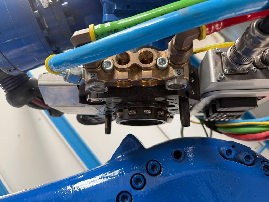 YASKAWA Industrial Robot GP180 with Control YRC1000 Type: YR-1-06VX180-A00 | Year of manufacture: 11/2022 | Load capacity: 180 kg | Own weight: 1,020 kg Serial number: 6V22Y2842450001 | Manufacturer: YASKAWA Europe Robotics d.o.o., Kocevje (Slovenia) Control: YRC1000, Type ERAS-1000-06VX280-E10, SN 6V22X2807840001, Year of manufacture 10/2022 Power: 6.5 kVA, Supply: AC 380–440 V, 50/60 Hz | Teach Pendant +RM1 |, Safety shutdown integrated.