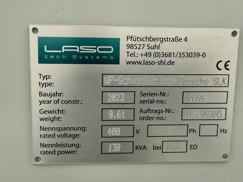 Resistance spot welding system LASO Tech Systems "WP-Welding System" Year of manufacture: 2023 Serial number: 21220 Order number: 11B01 265845 Manufacturer: LASO Tech Systems GmbH, 98527 Suhl Type: WP-Welding System