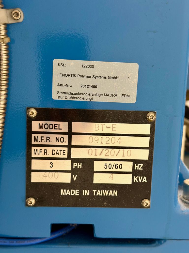The BT-E is a compact start hole EDM machine from Madra-EDM GmbH ("Bohrteufel" series).