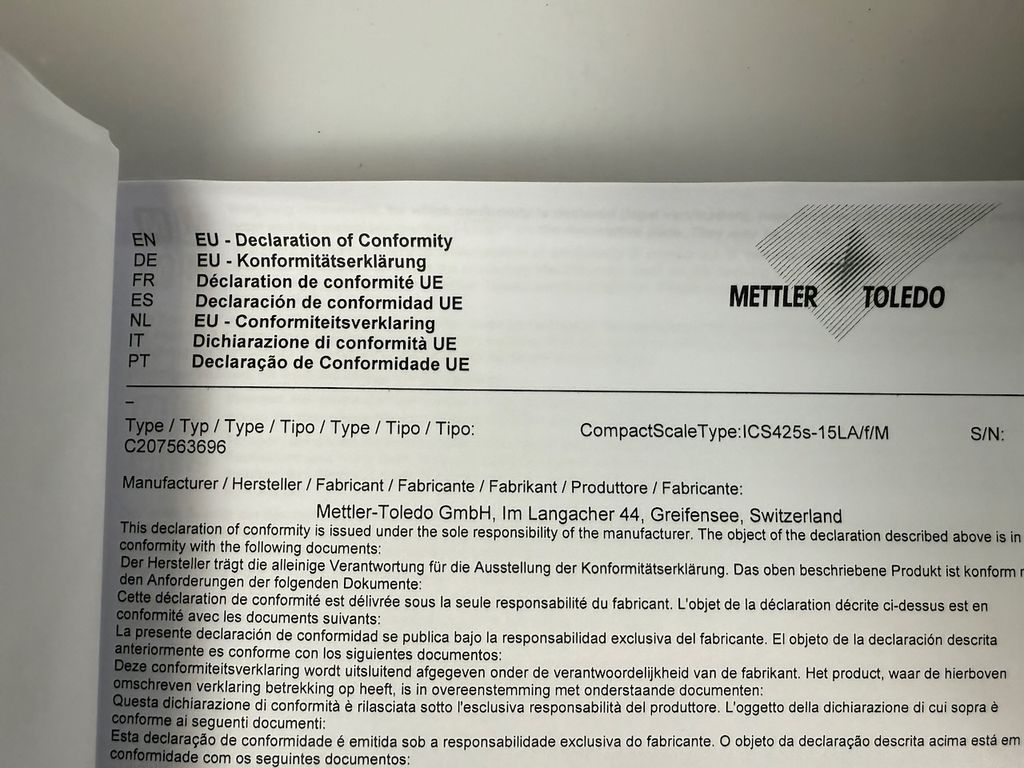| Manufacturer | Mettler Toledo |