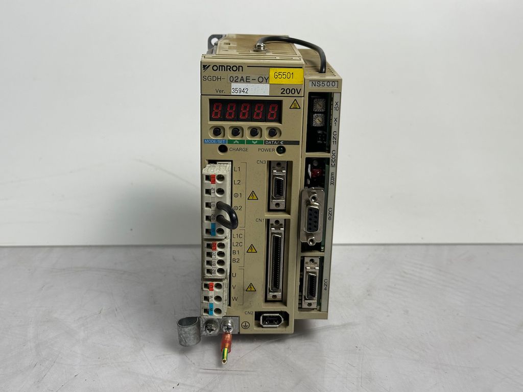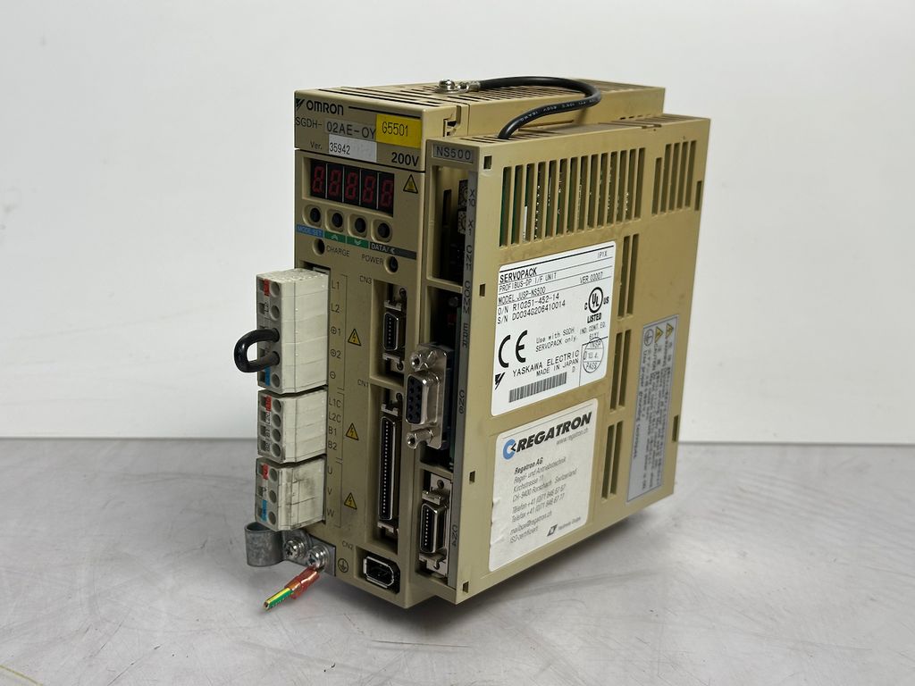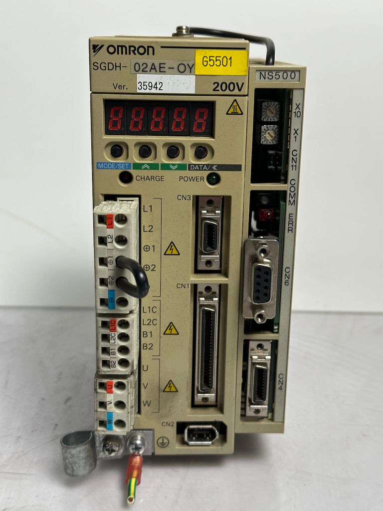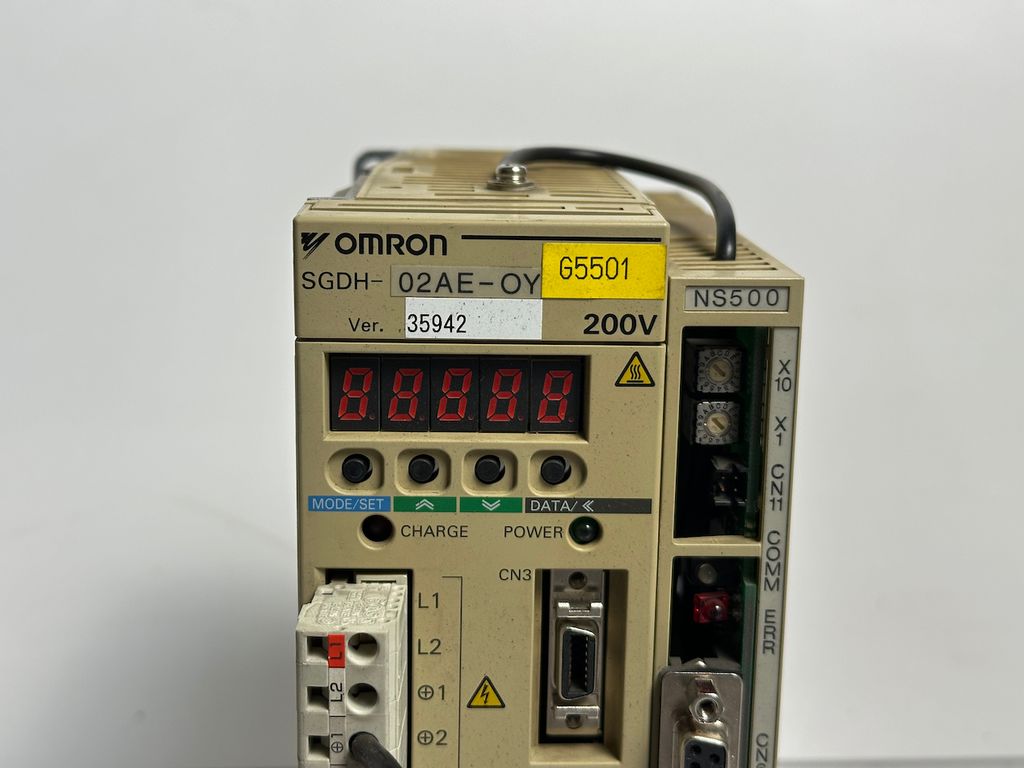 The OMRON SGDH-02AE-OY is a compact servo drive of the Sigma II series, designed for precise drive and positioning tasks in machinery and automation systems. In combination with the JUSP-NS500 position module, this set offers a powerful solution for applications requiring exact motion control and high reliability.