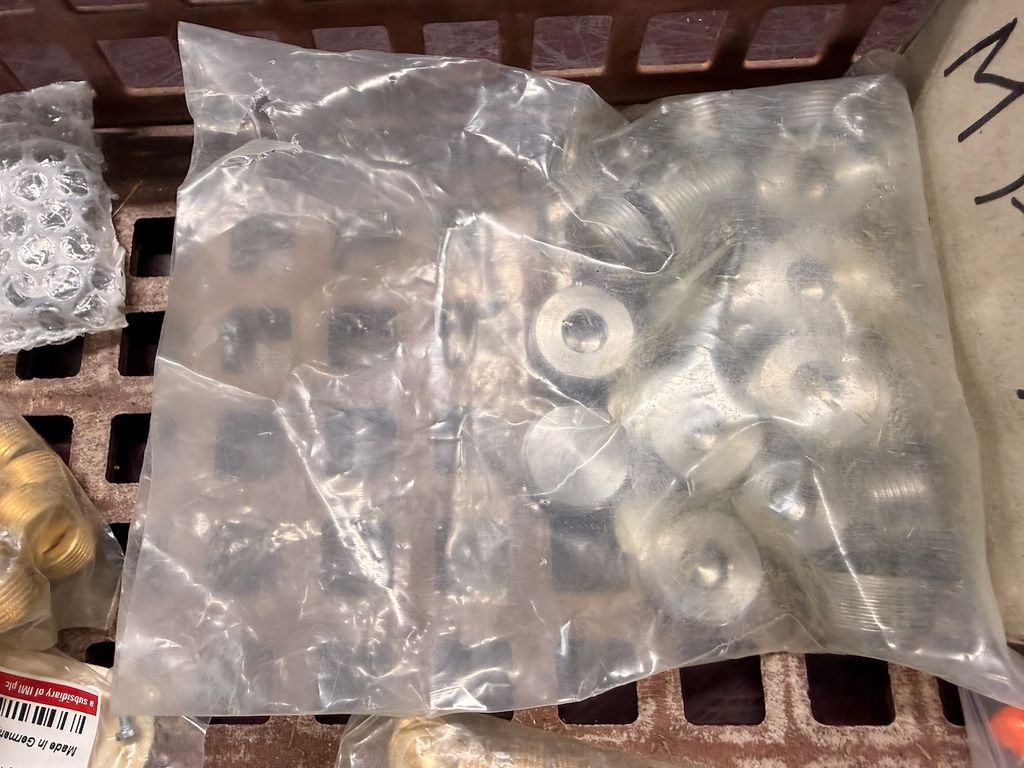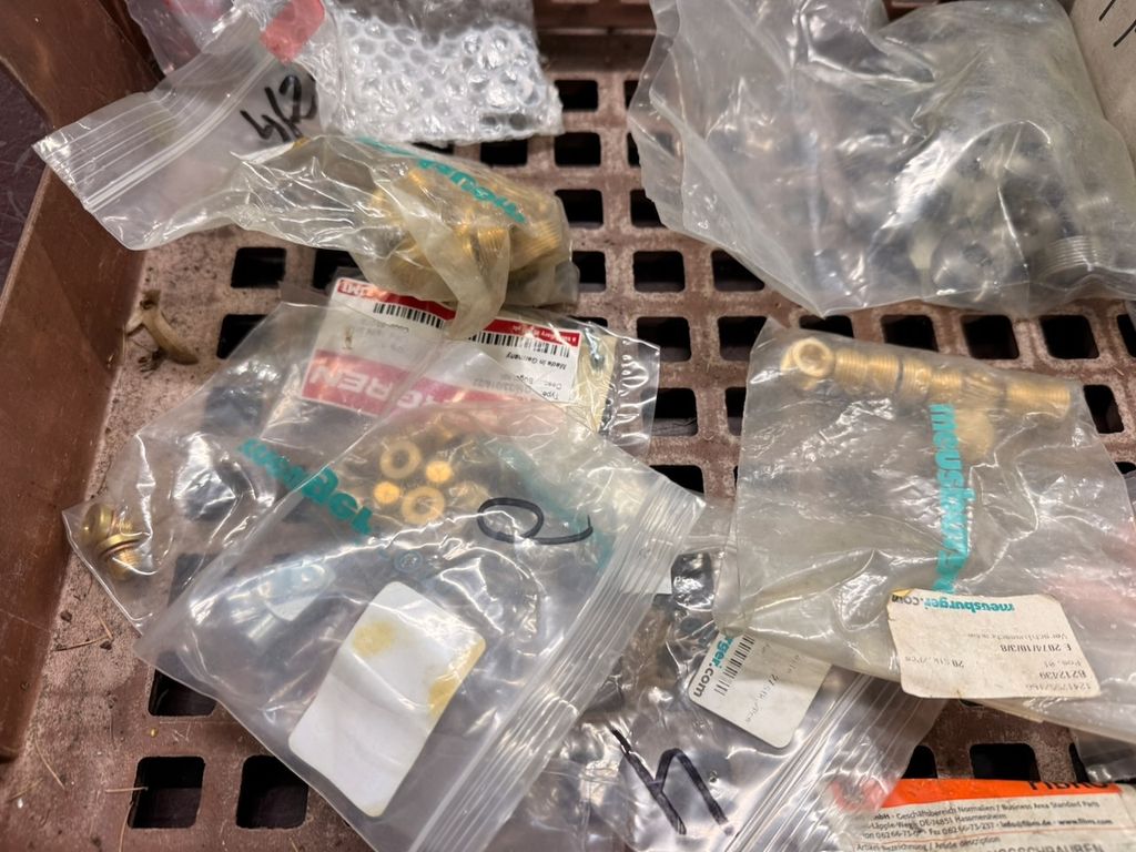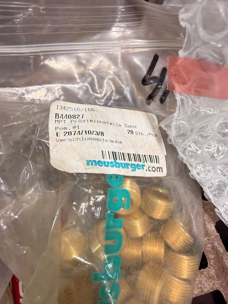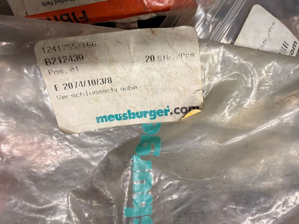 Mixed lot of standard parts, fastening elements, and machine components, mostly new, largely in original packaging. Included are, among others:
