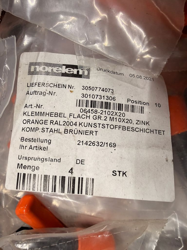 • Clamping levers (orange, plastic-coated, burnished steel)