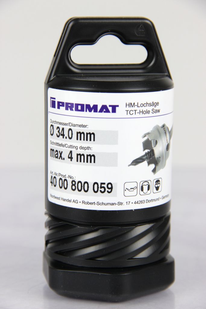 Promat ø 34.0 mm hole saw HM equipped with drill and spring
