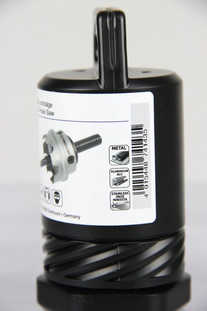 This carbide-tipped (HM) hole saw from PROMAT is a specialized tool for precise drilling in thin-walled materials. With a diameter of 34 mm, it is ideal for accurate cutouts in metal construction, control cabinet construction, and installation technology. The low cutting depth of 4 mm ensures extremely high lateral stability, which effectively prevents the tool from wandering in sheet metal. Thanks to the high-quality carbide teeth, even demanding materials such as stainless steel (V2A/V4A), alloyed steel, and glass fiber reinforced plastics can be machined effortlessly and burr-free. The complete system with centering drill and ejector spring guarantees maximum work safety and efficiency.