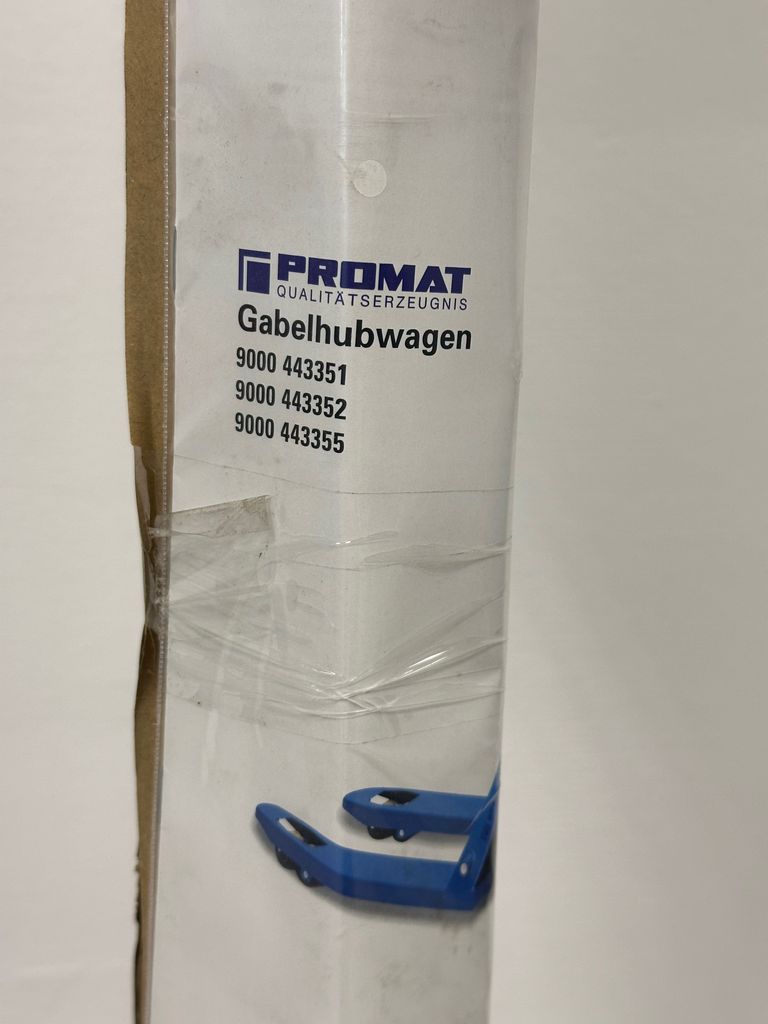 The Promat pallet truck is a reliable industrial truck for daily use in warehouses, workshops, and production.