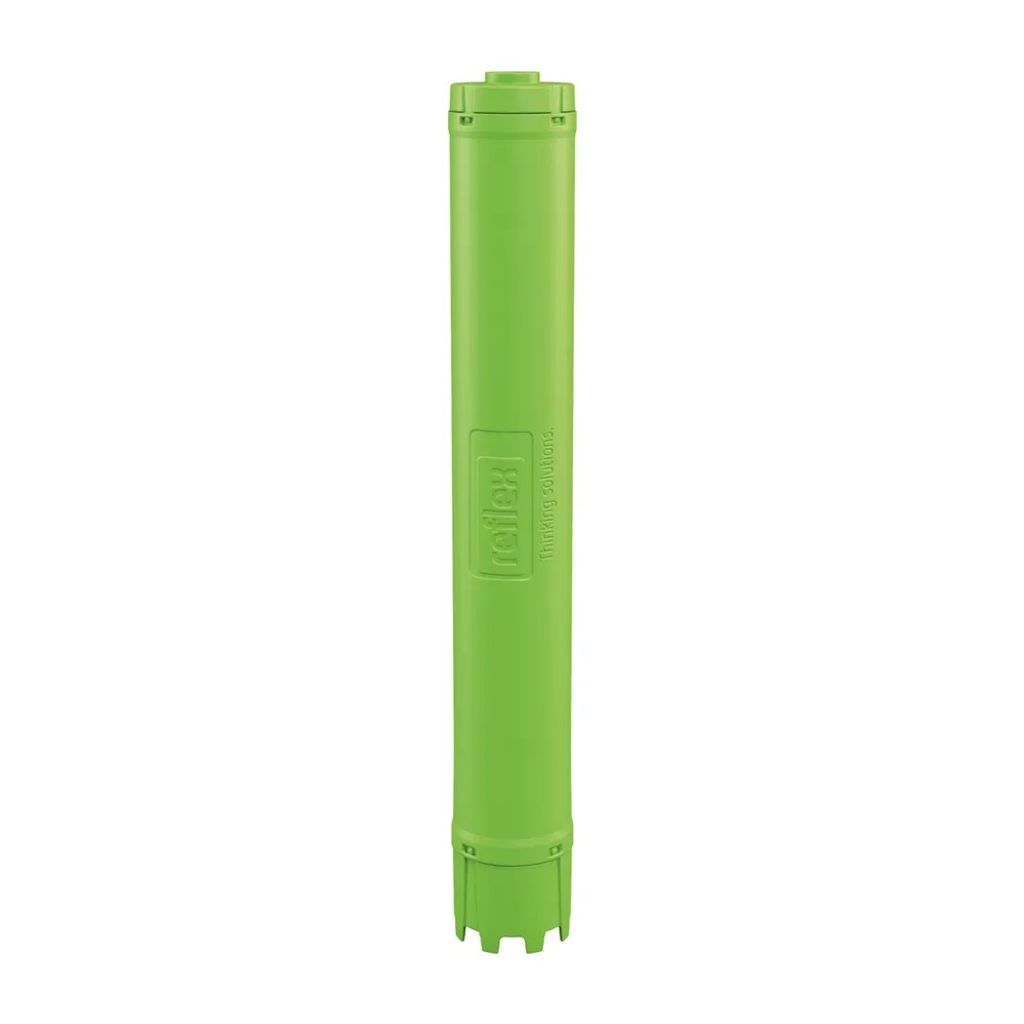 Reflex Fillsoft Cartridge Cation resin cartridge for softening fill and makeup water, suitable for use in the Fillsoft I or II cartridge housing. Consisting of a cylindrical polypropylene cartridge filled with cation exchange resin for softening fill and makeup water according to, for example, VDI 2035 and/or manufacturer specifications in hot water heating systems according to DIN EN 12828.