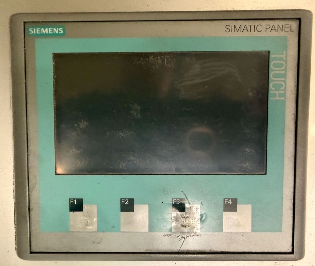 Siemens SIMATIC Panel – Operating device with emergency stop Manufacturer: Siemens Series: SIMATIC Panel (older HMI generation) Version: Compact HMI with 5.7" display, button operation F1–F4 Accessories: integrated emergency stop button, rear mounting bracket