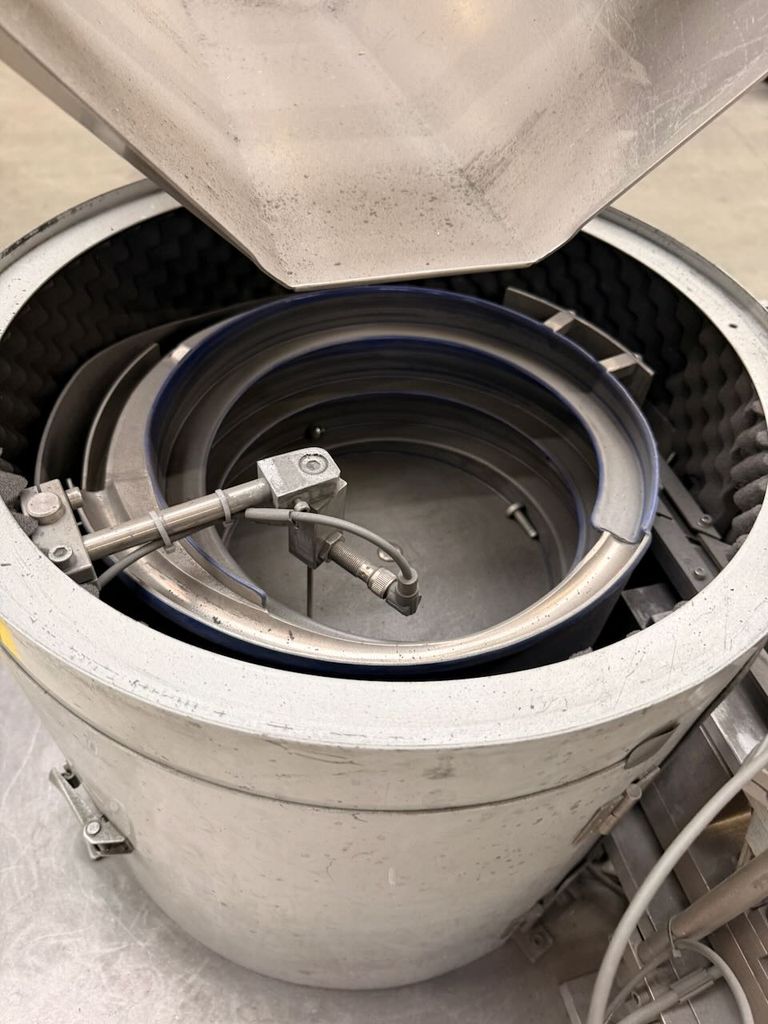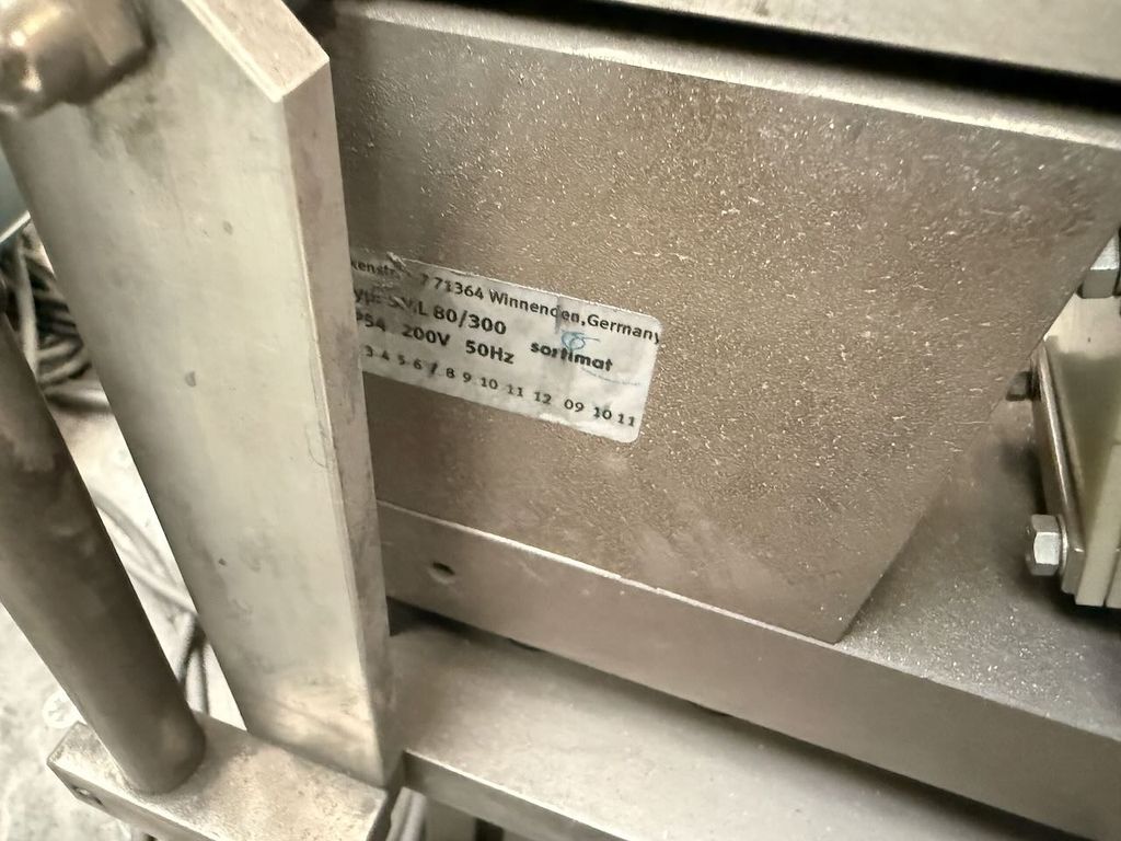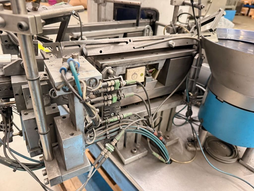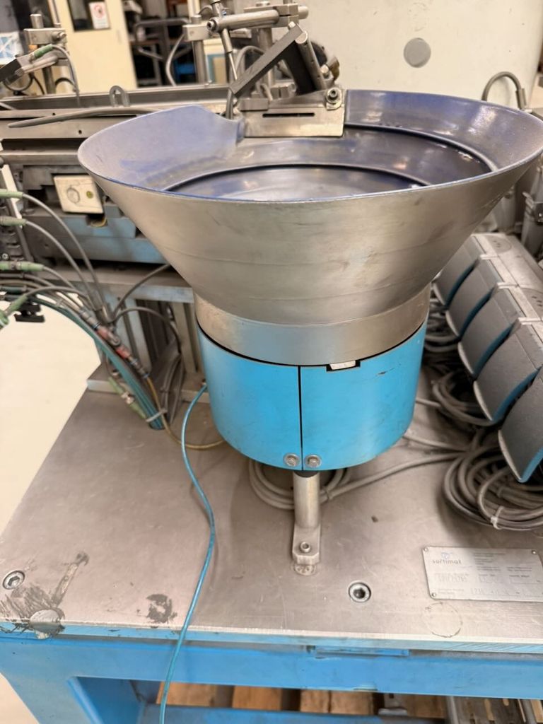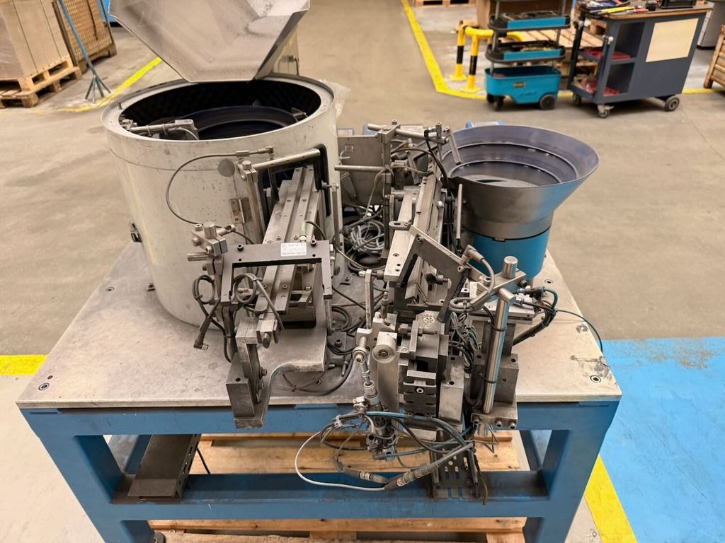 1. Sortimat Bowl Feeder (large) Machine No.: L00F20761 Year of manufacture: 08/2010 Diameter approx. 340 mm Completely enclosed housing With stainless steel hopper (large feed tray) Internal soundproofing 2. Sortimat Bowl Feeder (small) Diameter approx. 300 mm Vibration drive via Sortimat control unit For small parts feeding 3. Stainless Steel Hopper Feed Large stainless steel feed trough Length approx. 80–90 cm Automatic feeding into the large bowl feeder 4. Pneumatic Separation and Linear Technology Several pneumatic positioning units Linear rails Separation slides Limit switches, sensors Ideal for screws, bolts, fittings, pins, etc. 5. Control / Electrical Included control units (all mounted): 2× Sortimat Bowl Feeder Controls F20765 / F20767 1× Sortimat Hopper Control Unit 1× RED Revoplus Vibration Control 1× Sortimat Switching Unit Electrical connection: 230 V / 50 Hz