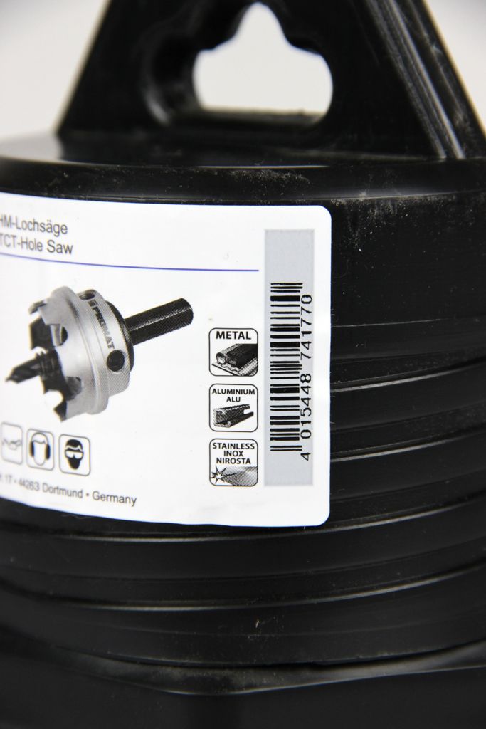 This PROMAT hole saw is a specialized tool for precise drilling in thin-walled materials. With a cutting depth of 4 mm and high-quality carbide tips (HM), it is ideal for working with stainless steel sheets, steel, non-ferrous metals, and plastics. The system is delivered ready for use and features an integrated pilot drill for accurate positioning as well as an ejector spring that reliably expels the drill core after the operation. The flat design ensures particularly high stability and clean cutting edges with minimal effort.