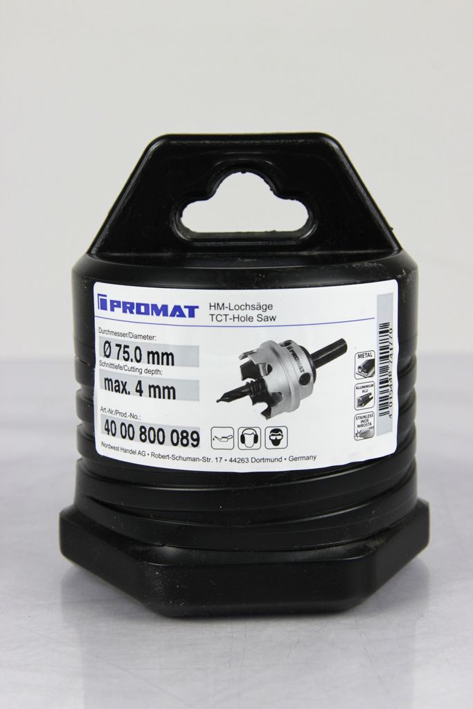 Promat ø 75.0 mm hole saw HM equipped with drill and spring