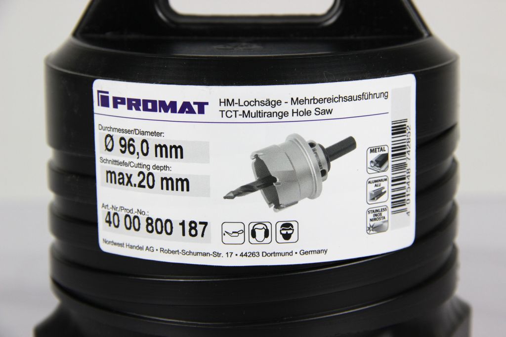 Promat ø 96.0 mm hole saw HM equipped with drill and spring