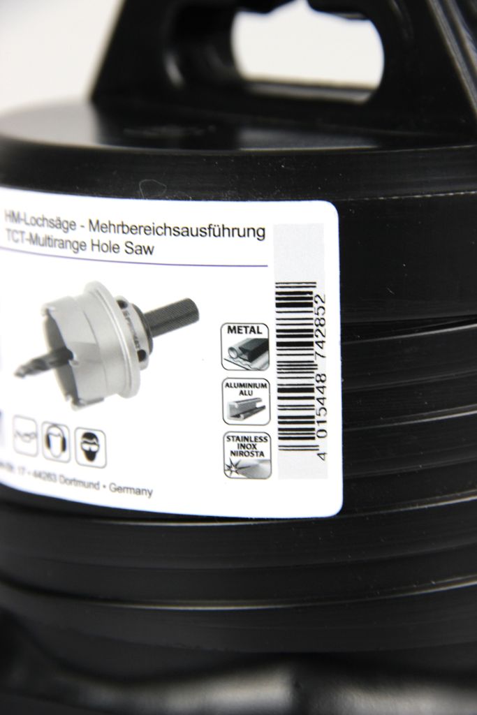 This PROMAT hole saw is a high-performance tool for precise drilling in demanding materials. Thanks to its high-quality carbide tips (HM), it is specially optimized for working with stainless steel (V2A/V4A), cast steel, non-ferrous metals, and glass fiber reinforced plastics. The set is ready to use and comes complete with a pilot drill bit and a practical ejector spring, which automatically ejects the core after cutting. As a quality product, this hole saw guarantees maximum service life and precise cutting edges for professional applications in metal construction, plumbing, or electrical trades.