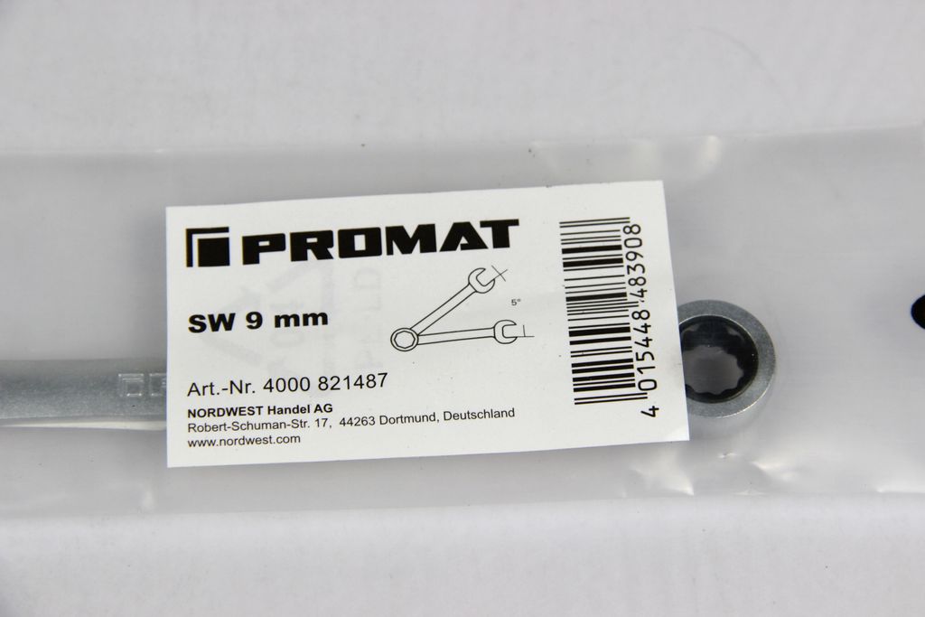 Promat SW 9 mm ring ratchet wrench straight length 143 mm